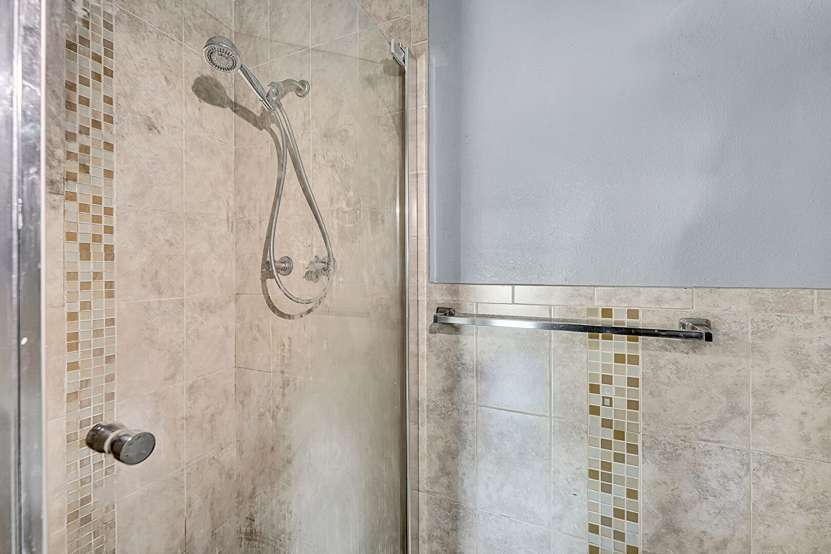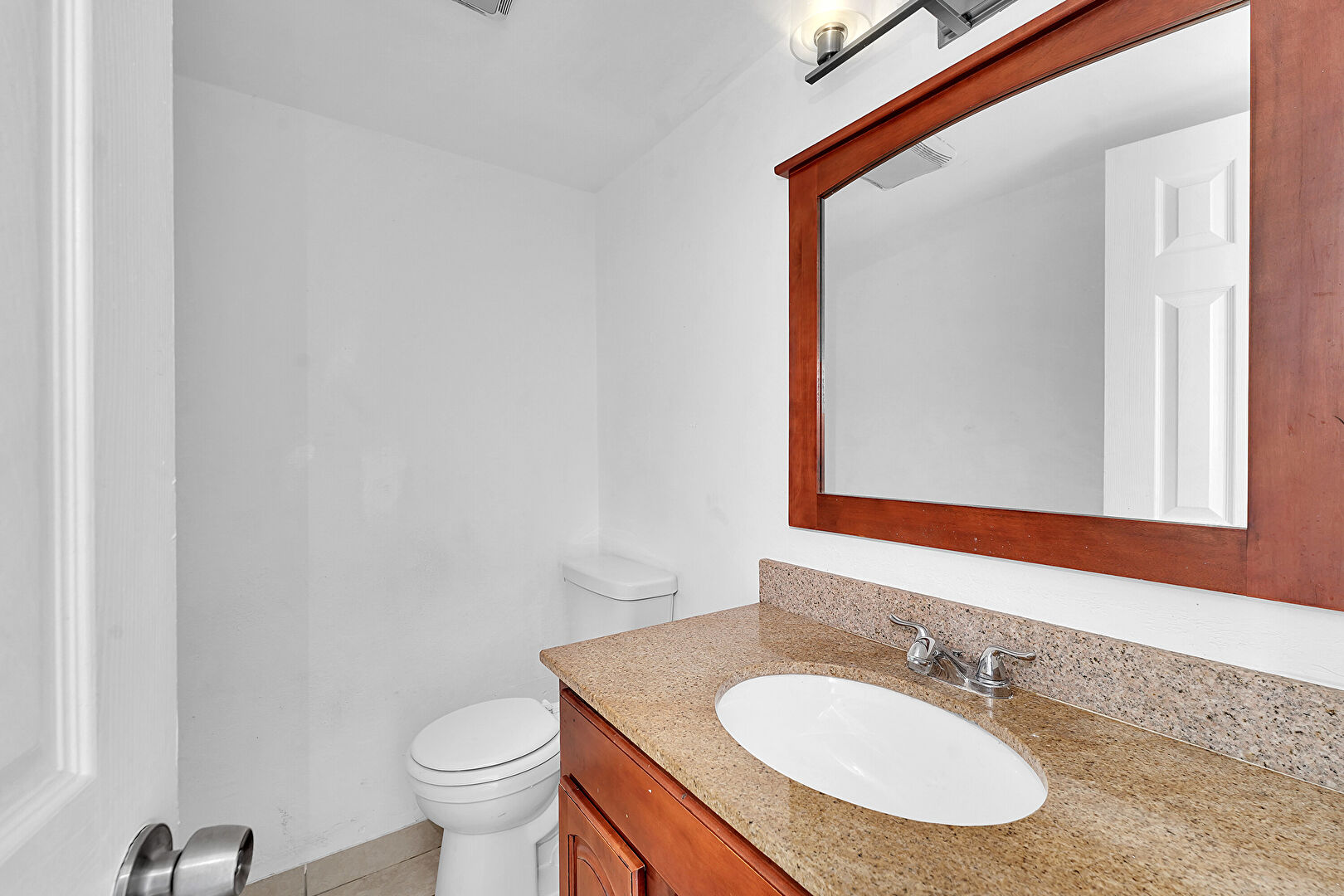 Combined Bath Shower, Drywall, Full Bathroom, Half Bathroom, Textured Wall, Tile Floor, Tile Wall, Vanity, Vent, Tile Wall, Vanity, Wainscot Wall