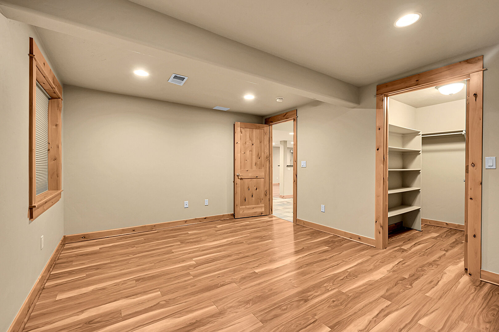 Baseboards Wall, Basement, Beamed Ceiling, Drywall, Recessed Lighting, Vent, Walk In Closet, Wood Finish Floor, Drywall, Wood Finish Floor