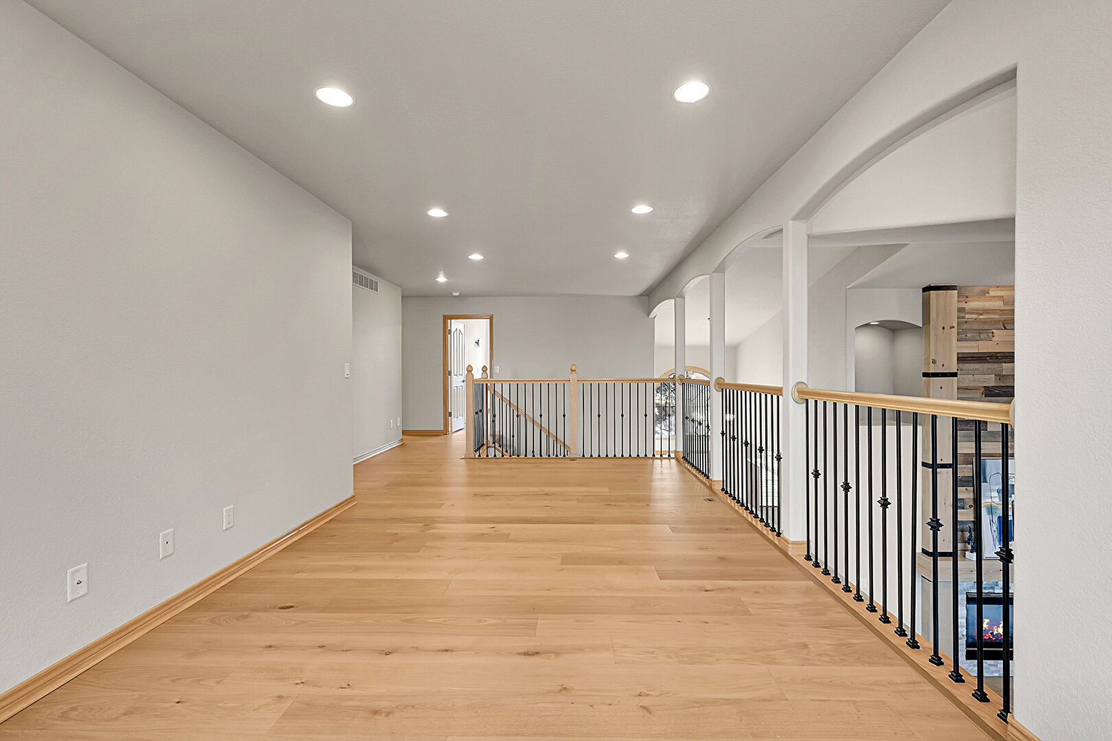 Baseboards Wall, Drywall, Loft, Natural Light, Recessed Lighting, Smoke Carbon Monoxide Detector, Upstairs Landing, Vent, Wood Finish Floor, Baseboards Wall, Wood Finish Floor