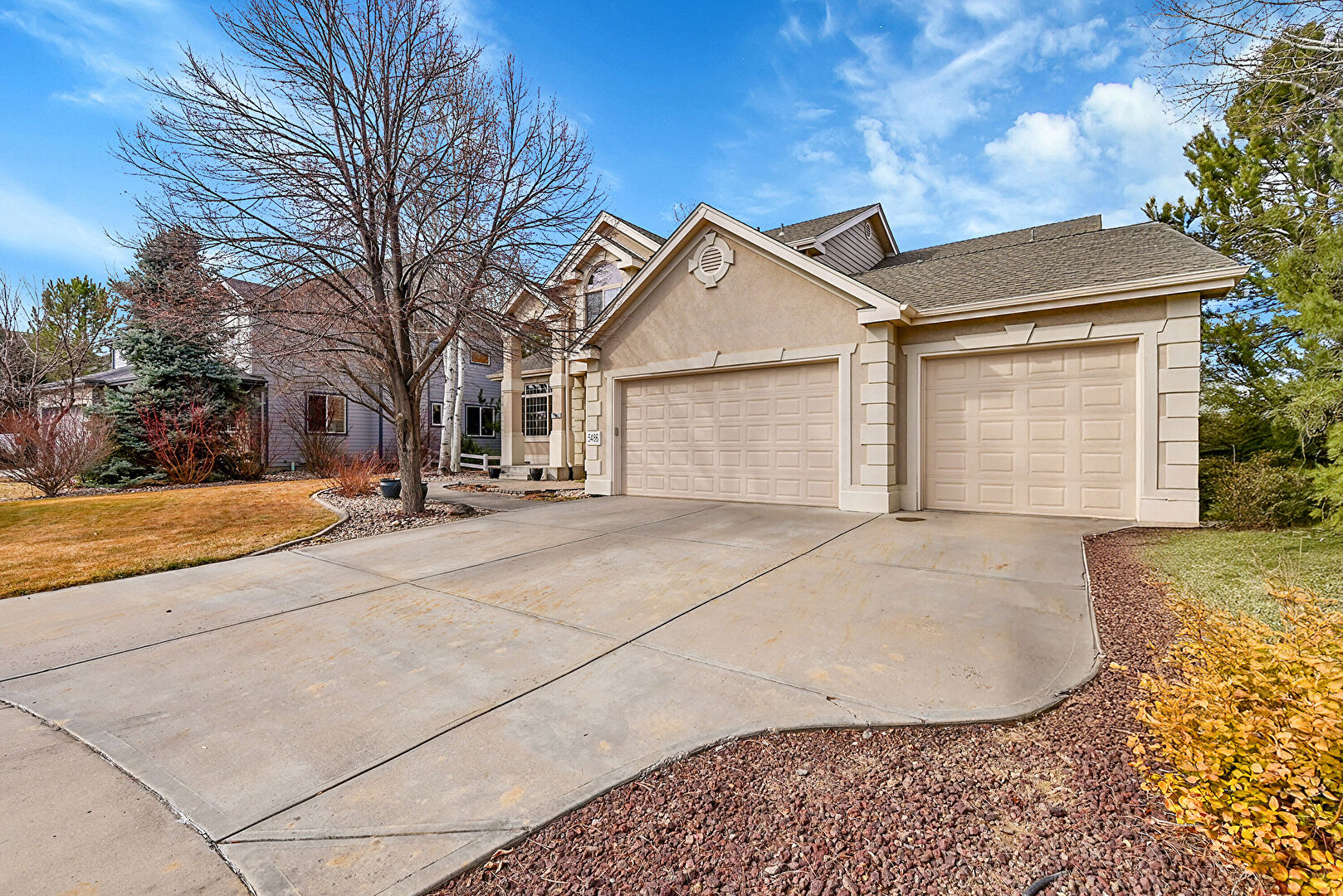 Downspout, Driveway, Lawn, Shingle Roof, Stoop, Stucco Siding, Downspout, Shingle Roof, Stucco Siding