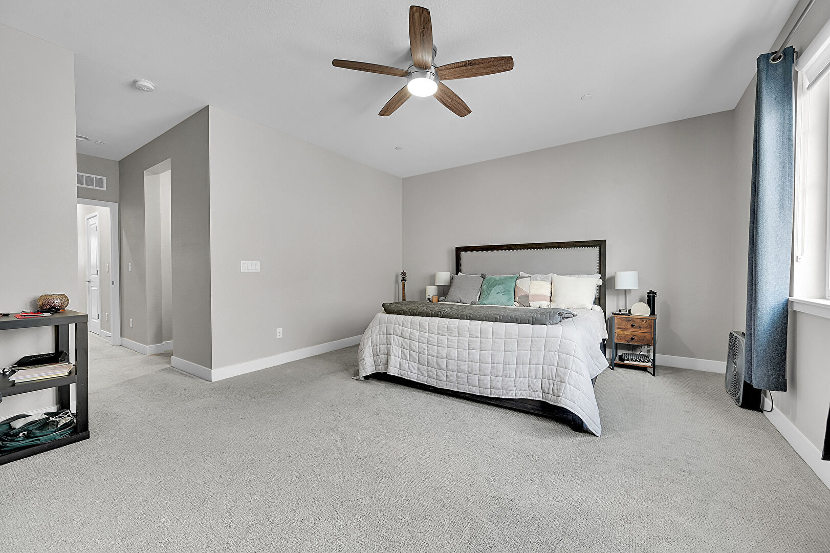 Baseboards Wall, Carpet, Ceiling Fan, Drywall, Natural Light, Vent, Natural Light, Vent
