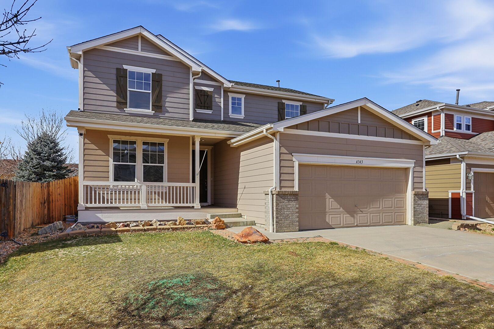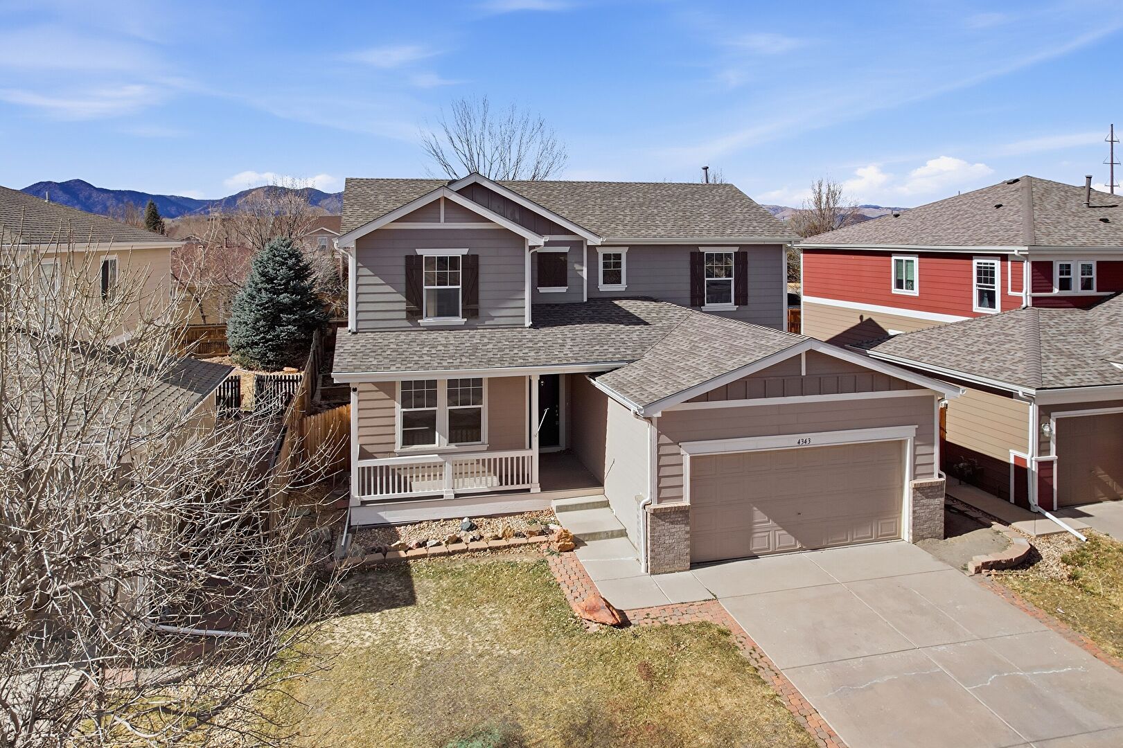 Board Batten Siding, Brick Siding, Downspout, Driveway, Fence, Garage, Gutters, Horizontal Siding, Lawn, Mountain View, Porch, Residential View, Shingle Roof, Stone Siding, Vertical Siding, Brick Siding, Downspout, Fence, Horizontal Siding, Mountain View