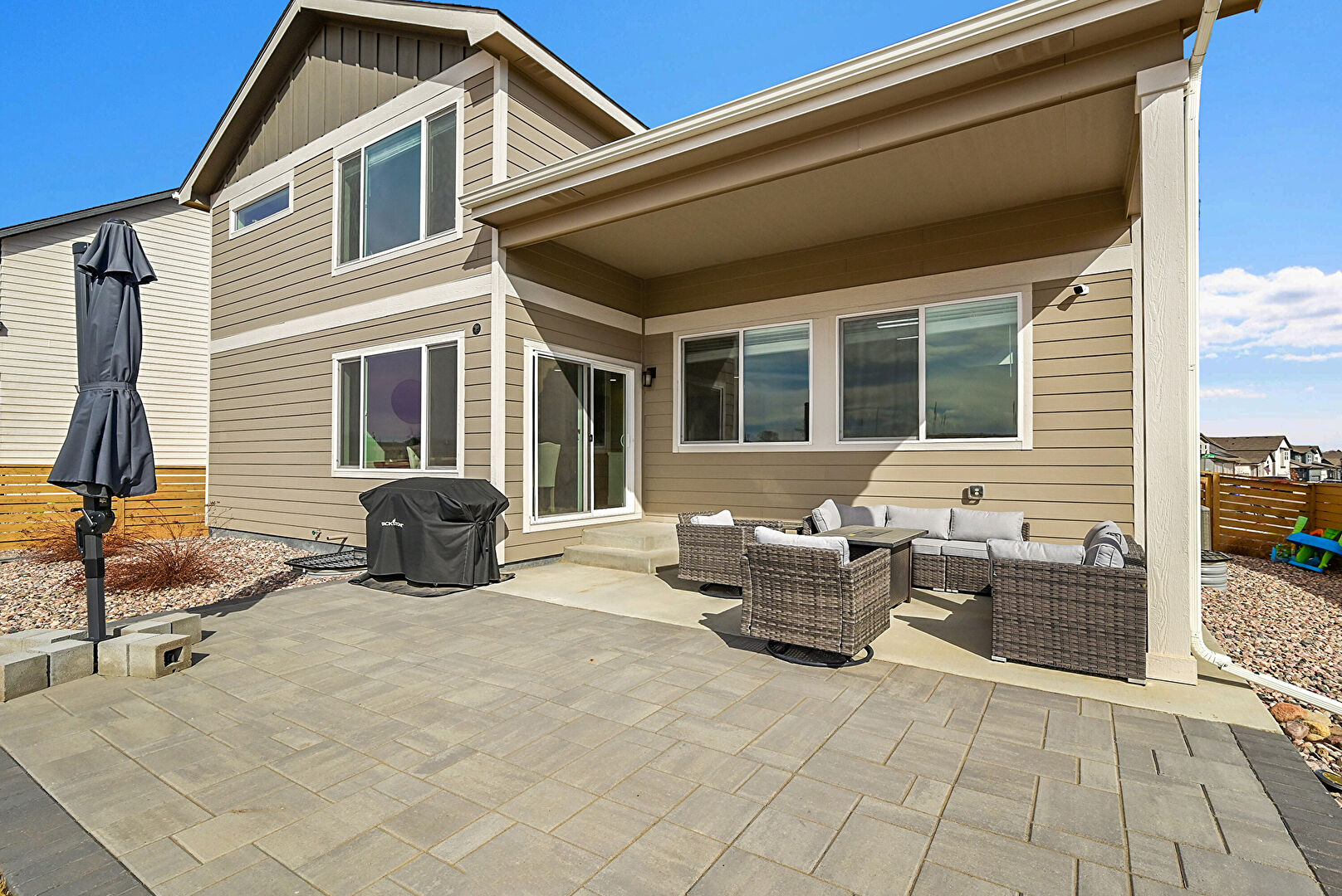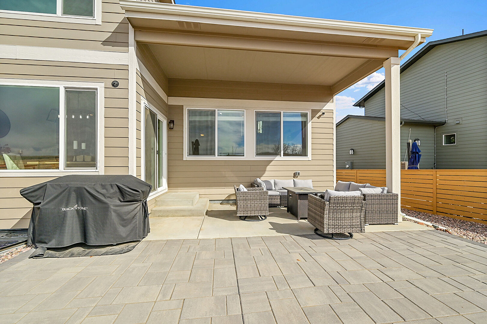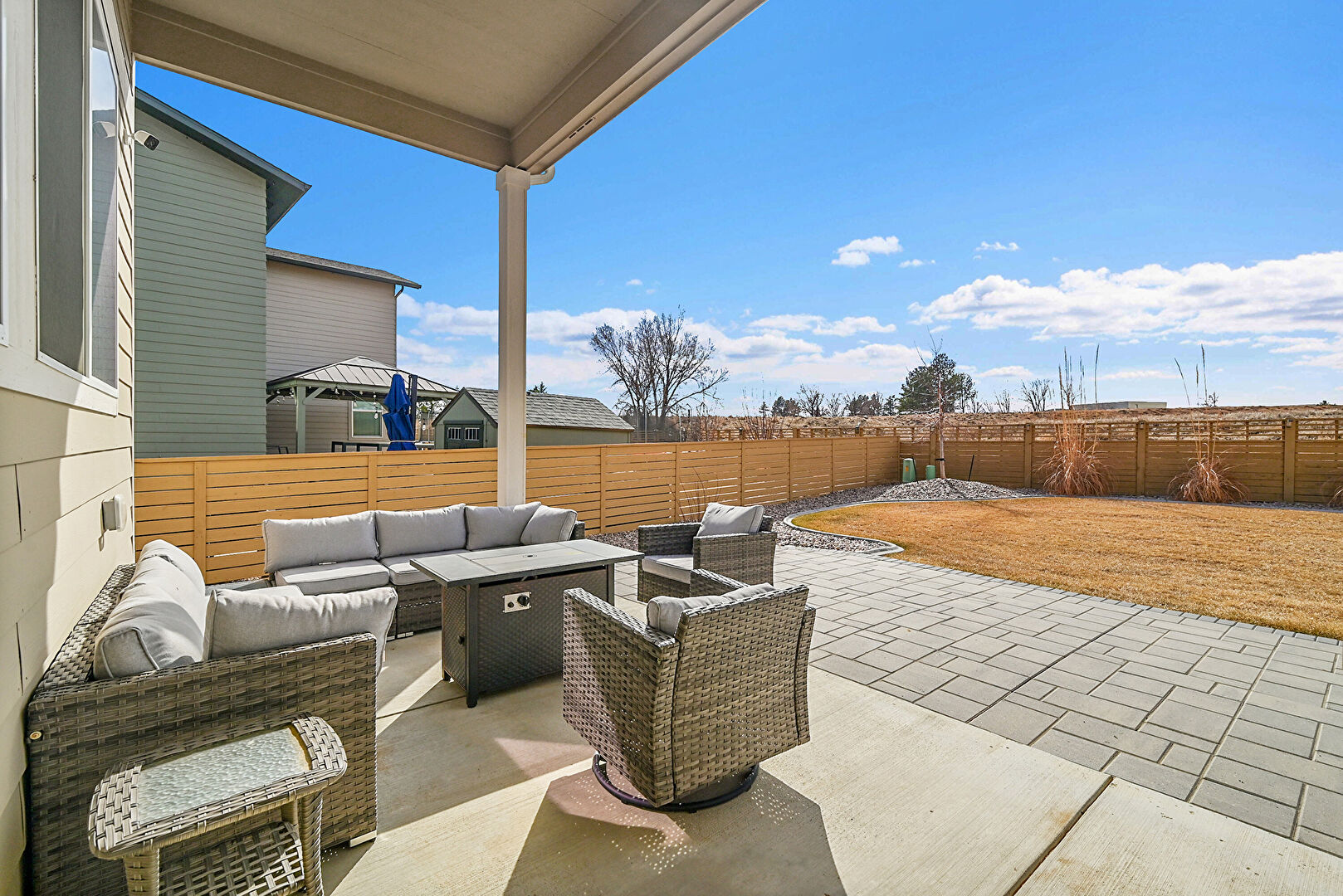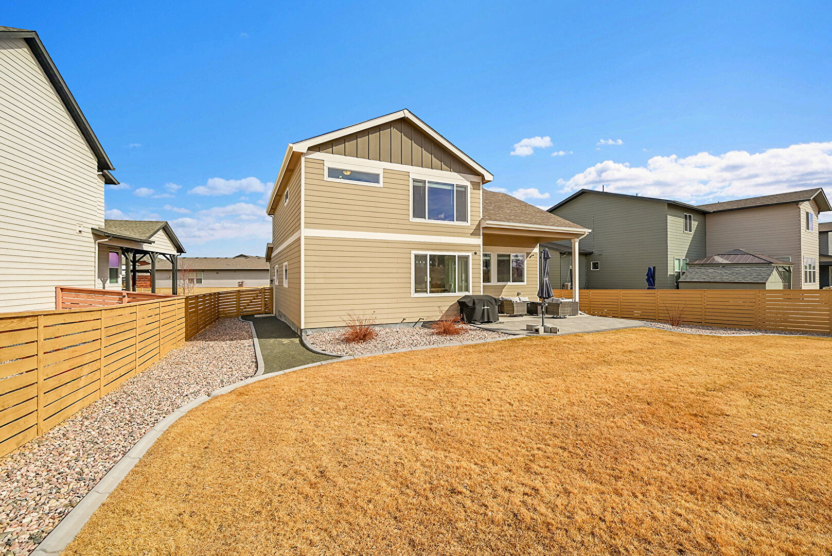 Board Batten Siding, Downspout, Entry Steps, Fence, Grill, Gutters, Horizontal Siding, Outdoor Living Space, Patio, Vertical Siding, Concrete Foundation, Fence, Fire Pit, Lawn