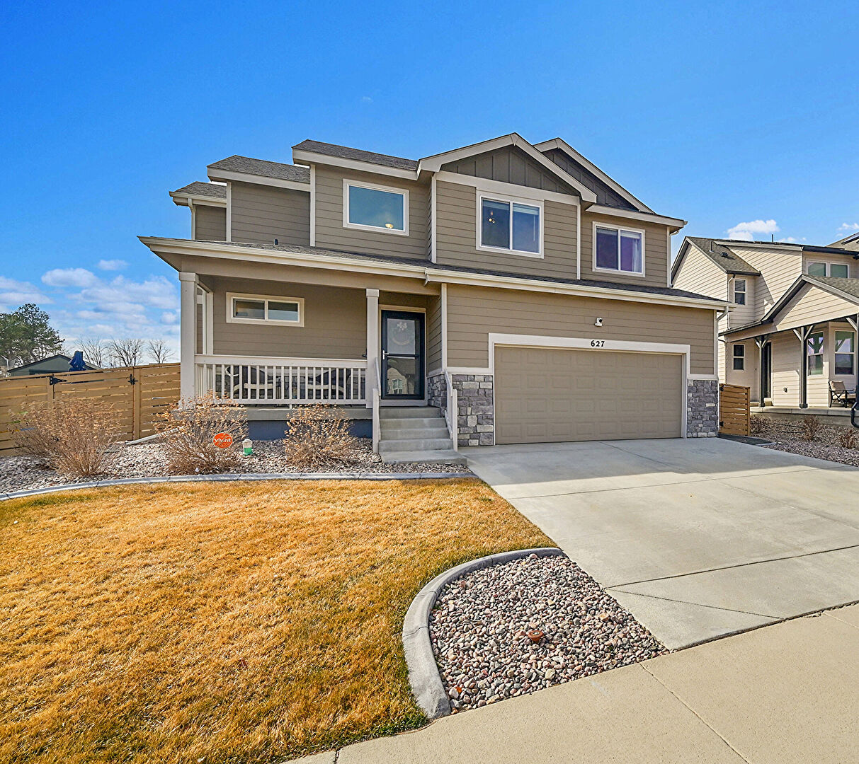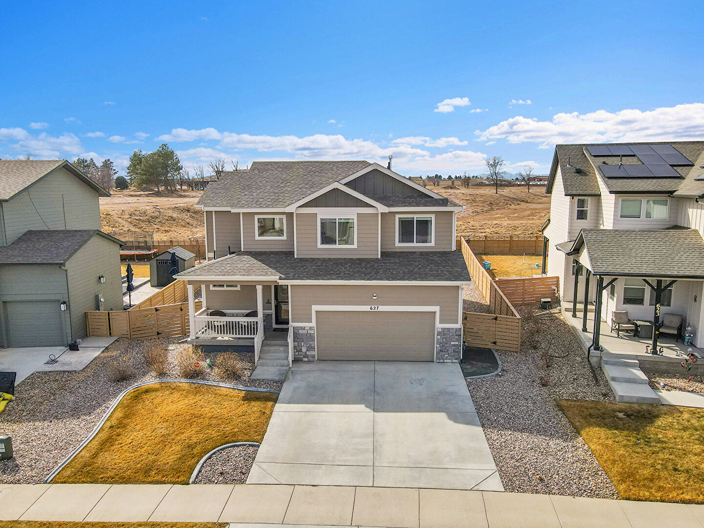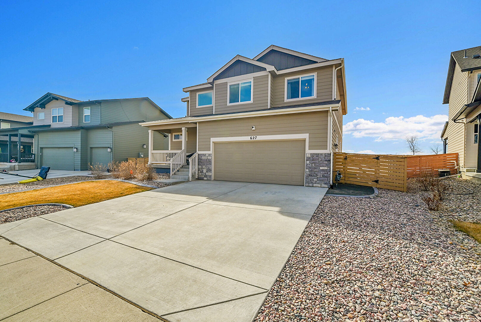 Board Batten Siding, Built In Garage, Downspout, Driveway, Fence, Gas Meter, Gate, Gutters, Horizontal Siding, Lawn, Pad Mount Transformer, Porch, Residential View, Shingle Roof, Stone Siding, Vertical Siding, Built In Garage, Driveway, Gazebo, Porch, Vertical Siding