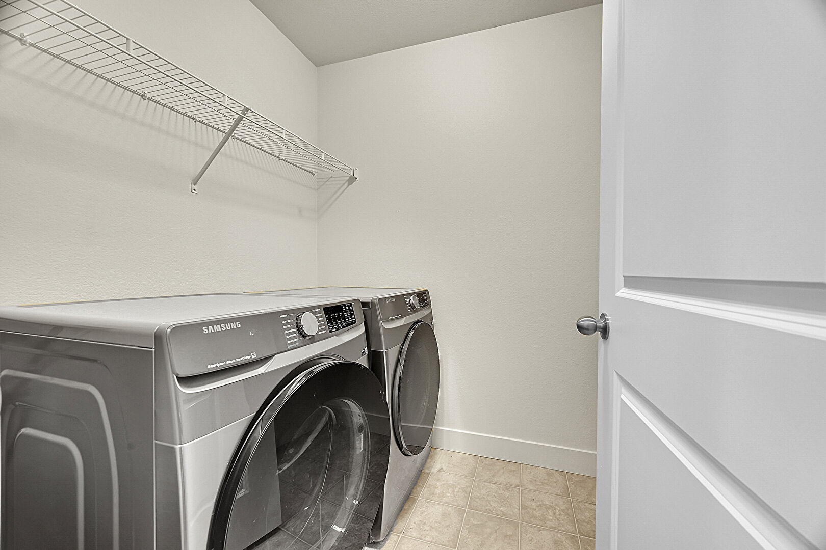 Drywall, Laundry, Tile Floor, Baseboards Wall