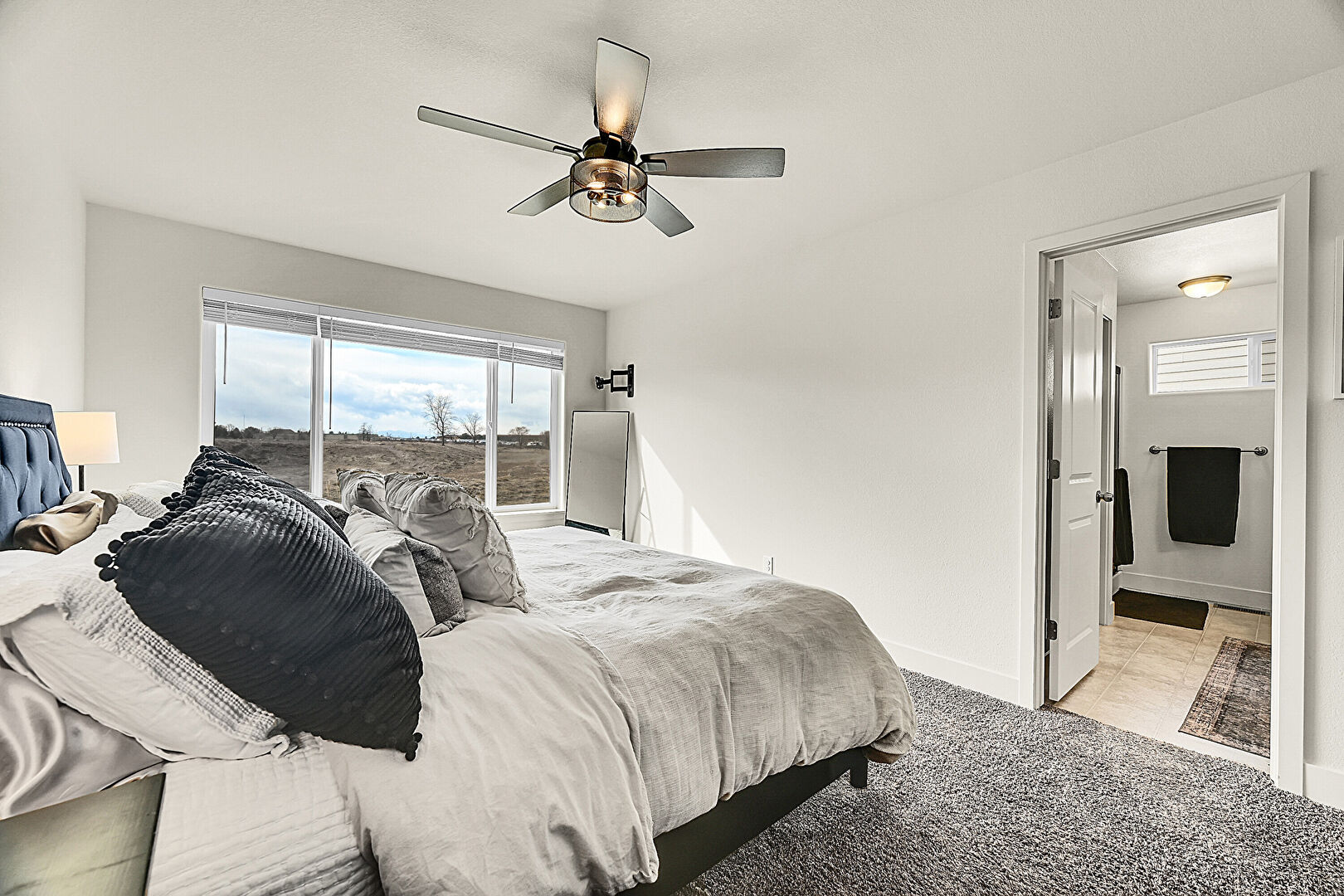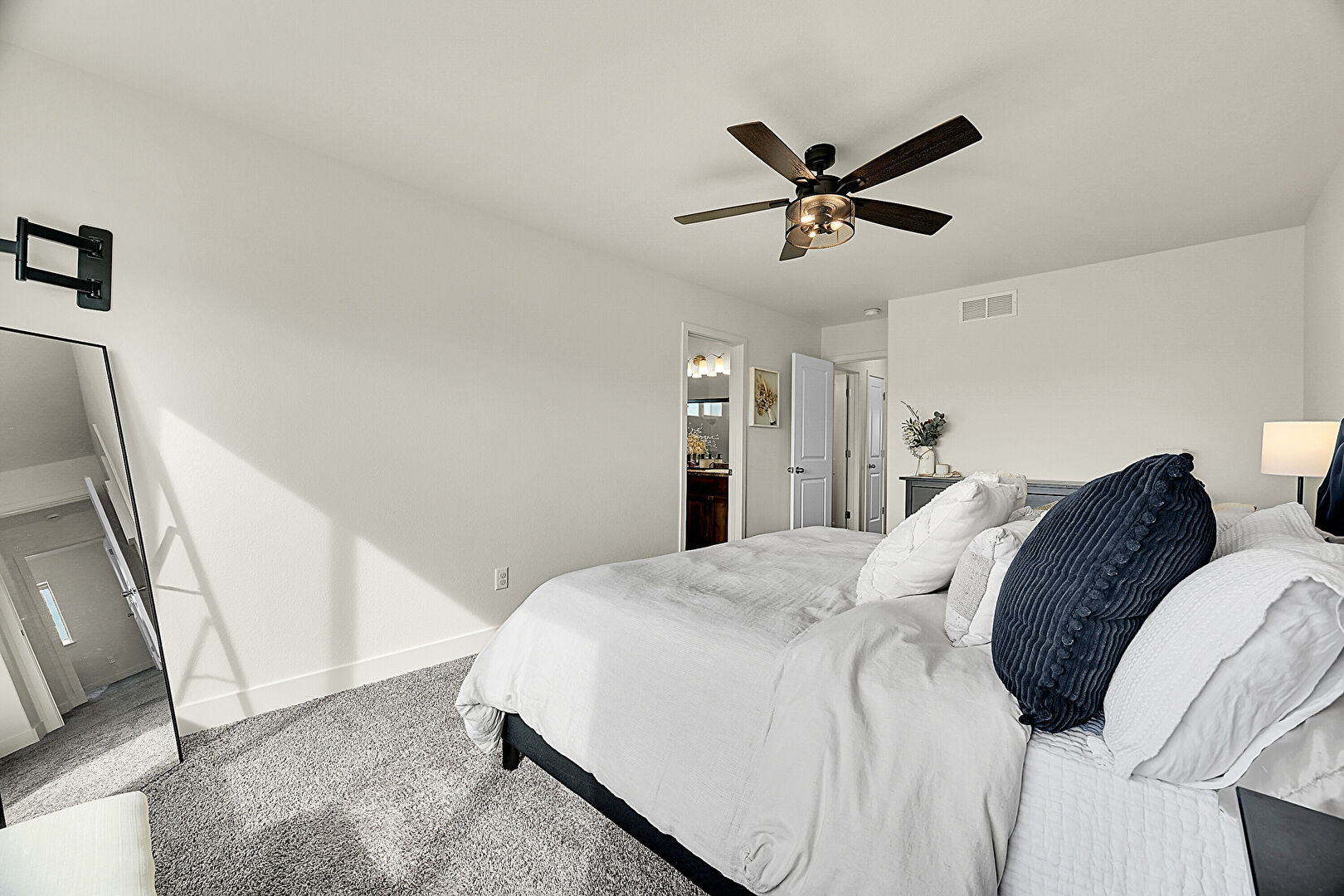 Baseboards Wall, Carpet, Ceiling Fan, Drywall, Ensuite Bathroom, Natural Light, Tile Floor, Vent, Baseboards Wall, Carpet, Drywall