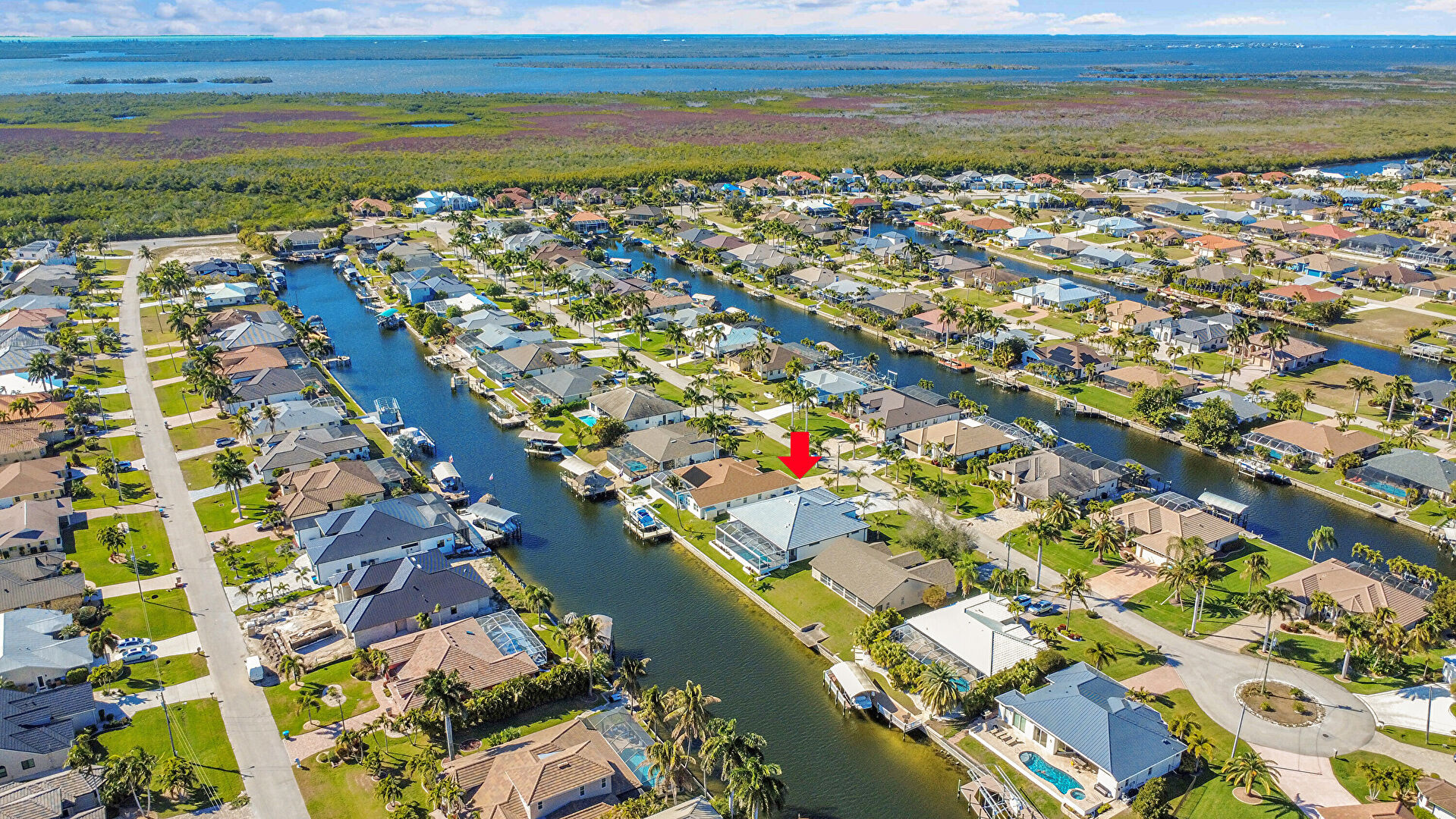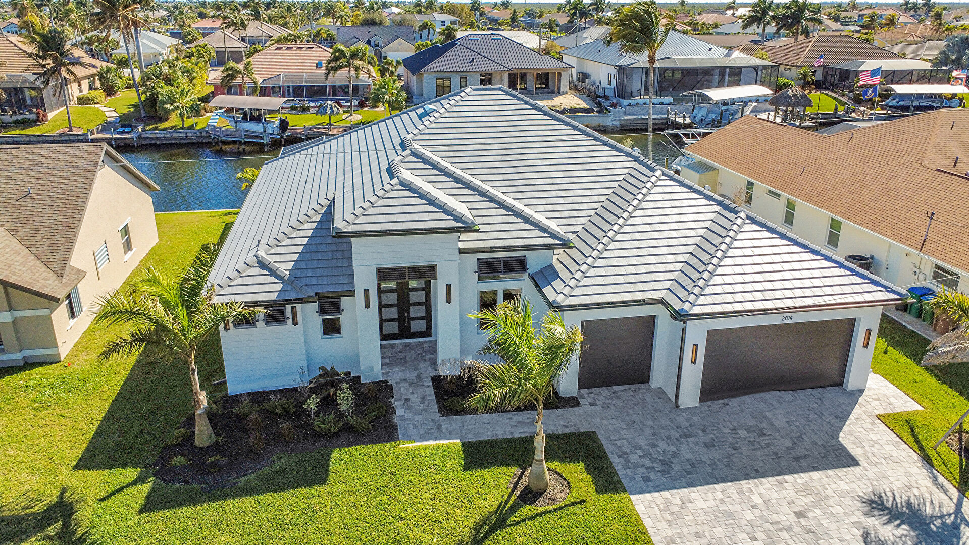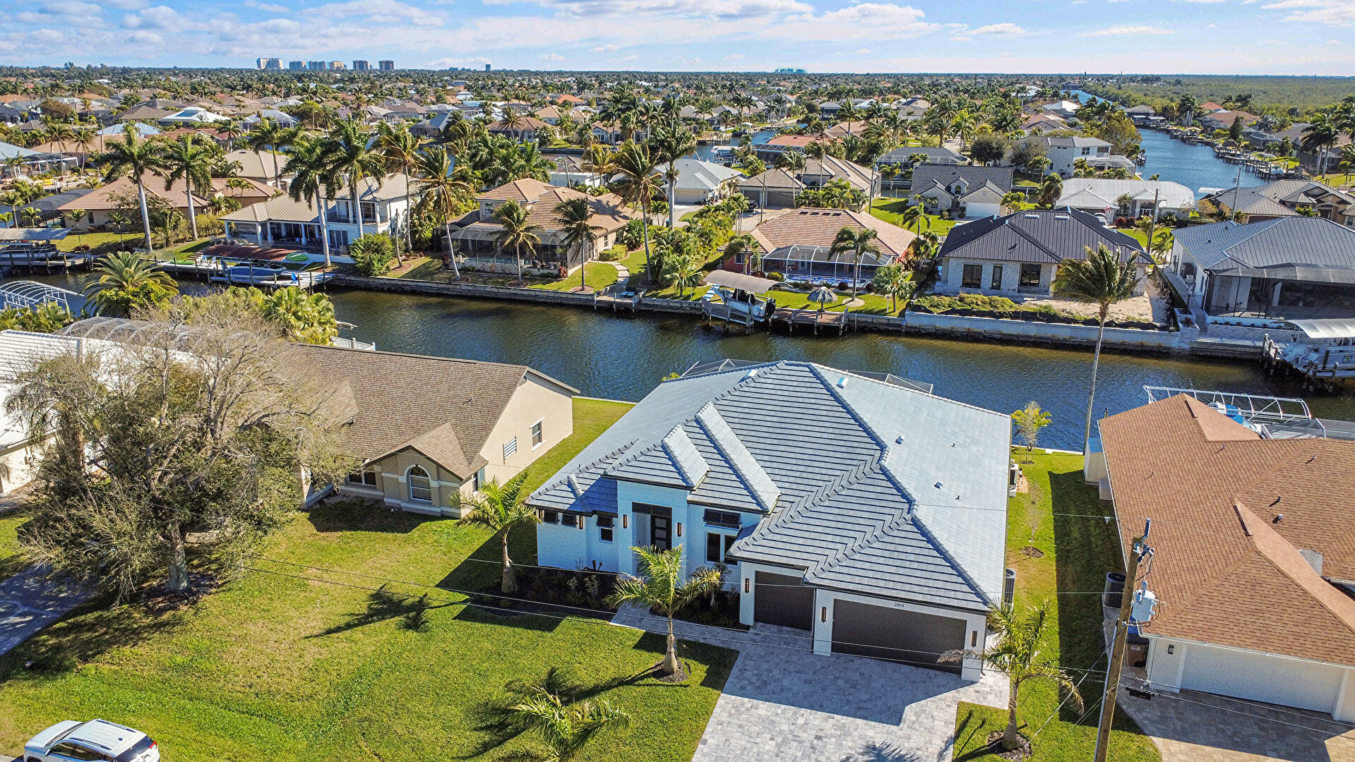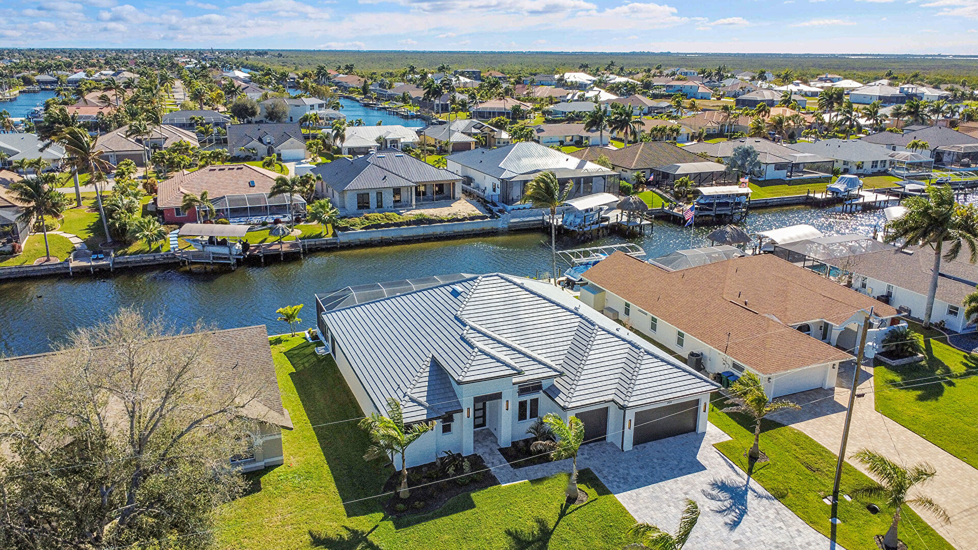 Canalfront, Central Ac, Downspout, Driveway, French Doors, Gutters, Lawn, Residential View, Stucco Siding, Tile Roof, Water Meter, Water View, Waterfront, French Doors, Tile Roof