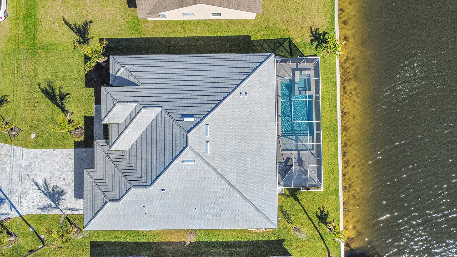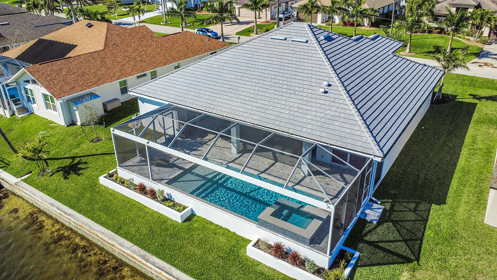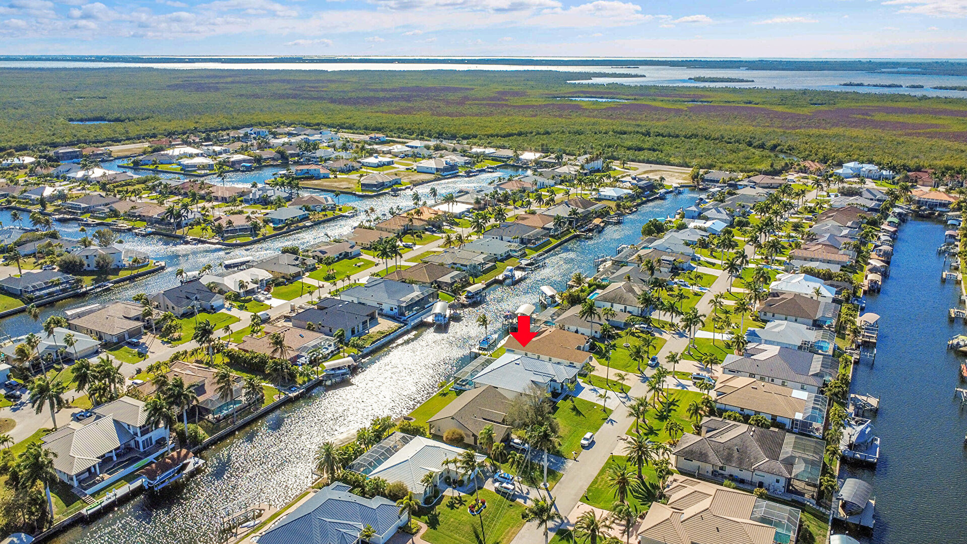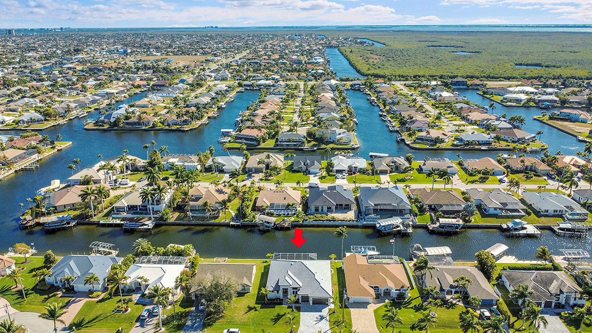 Canalfront, Central Ac, Downspout, Driveway, French Doors, Gutters, Lawn, Residential View, Stucco Siding, Tile Roof, Water Meter, Water View, Waterfront, French Doors, Tile Roof