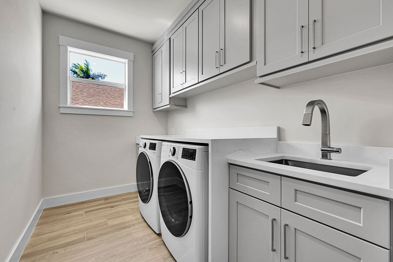 Baseboards Wall, Drywall, Natural Light, Wood Finish Floor, Laundry