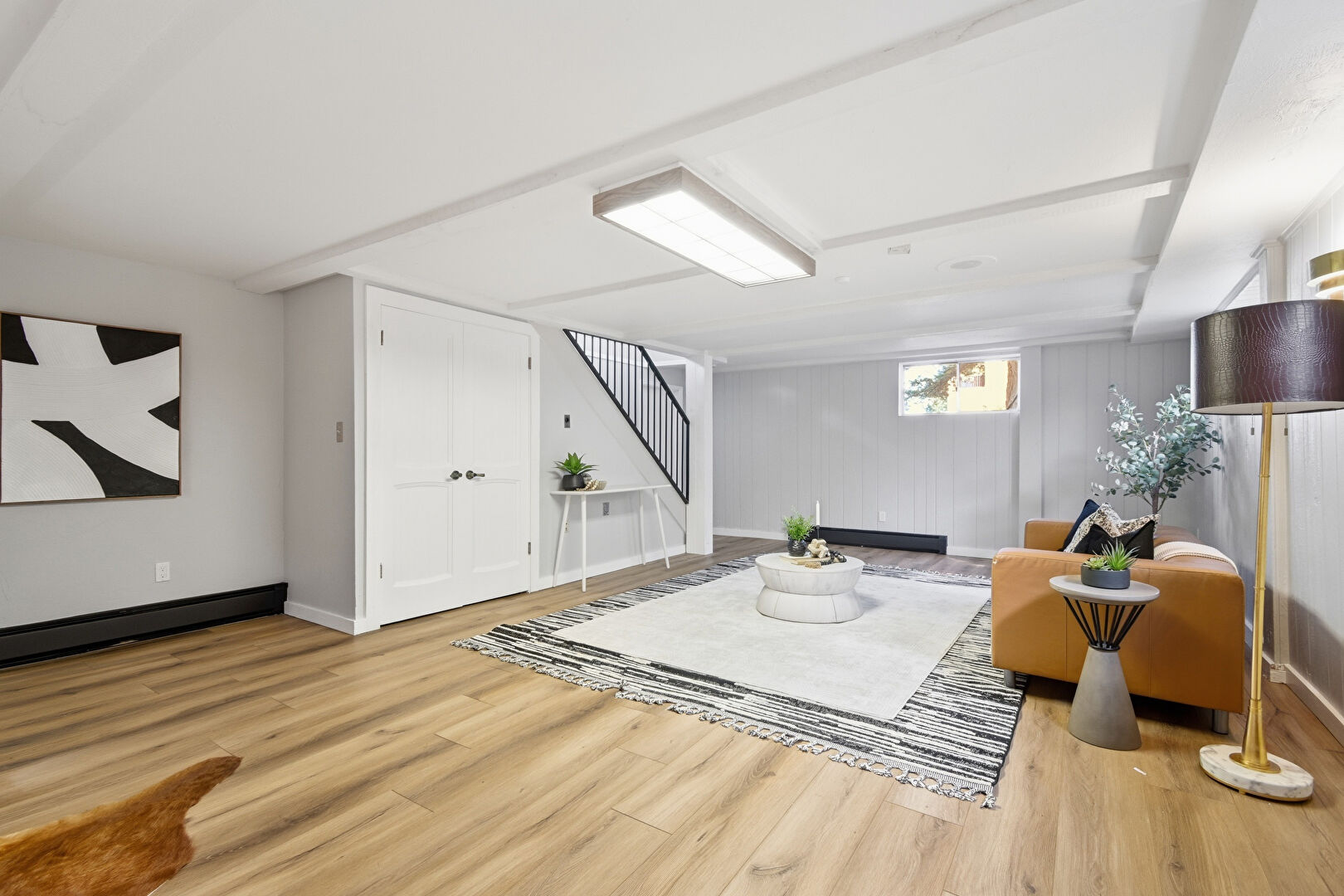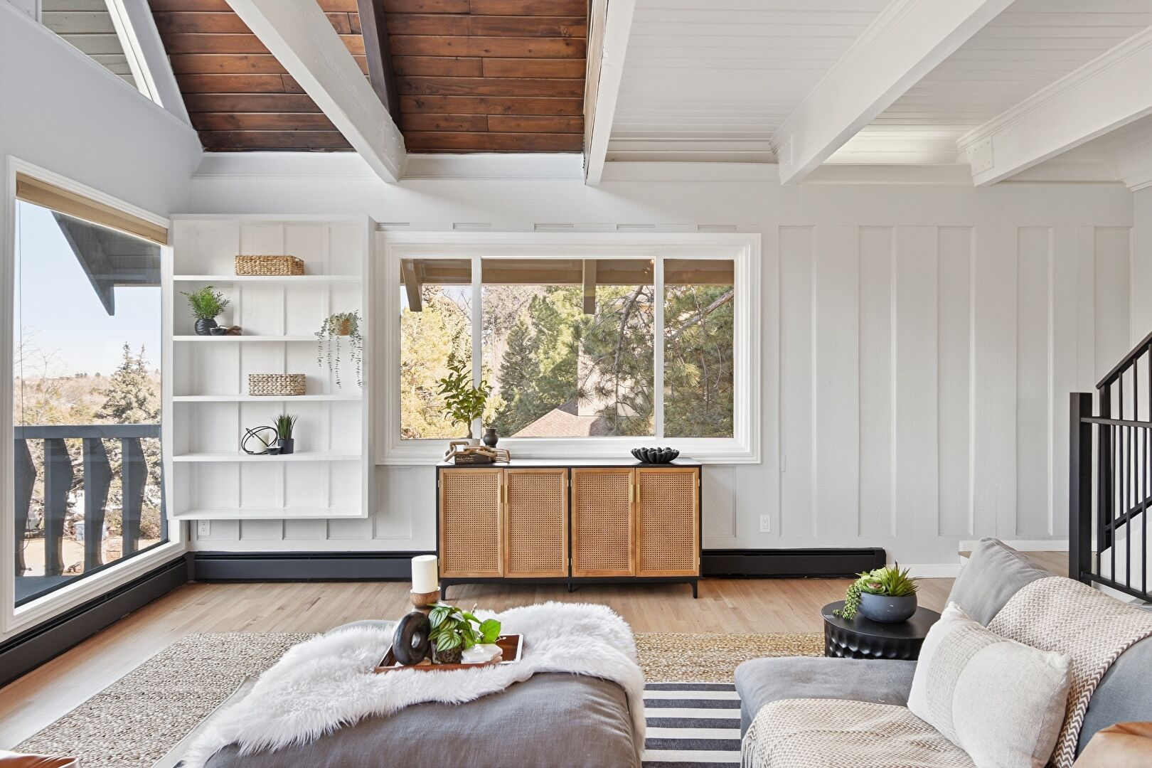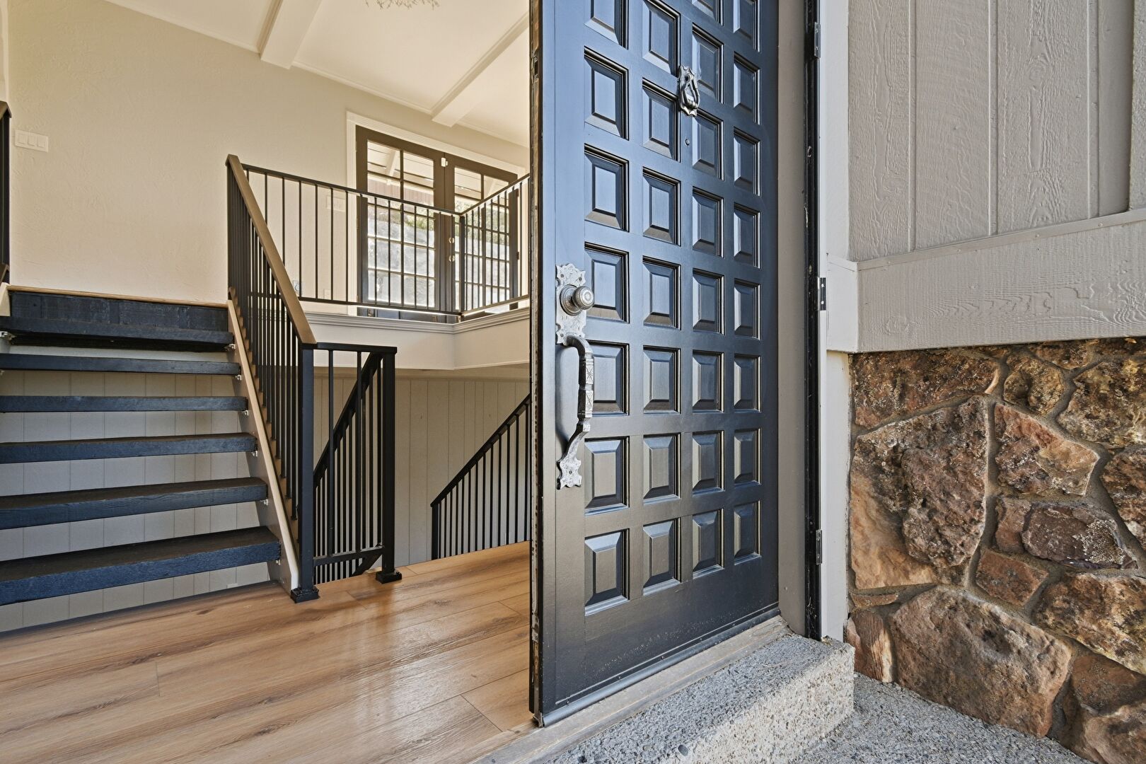 High Ceiling, Natural Light, Stairs, Wood Finish Floor, Baseboards Wall