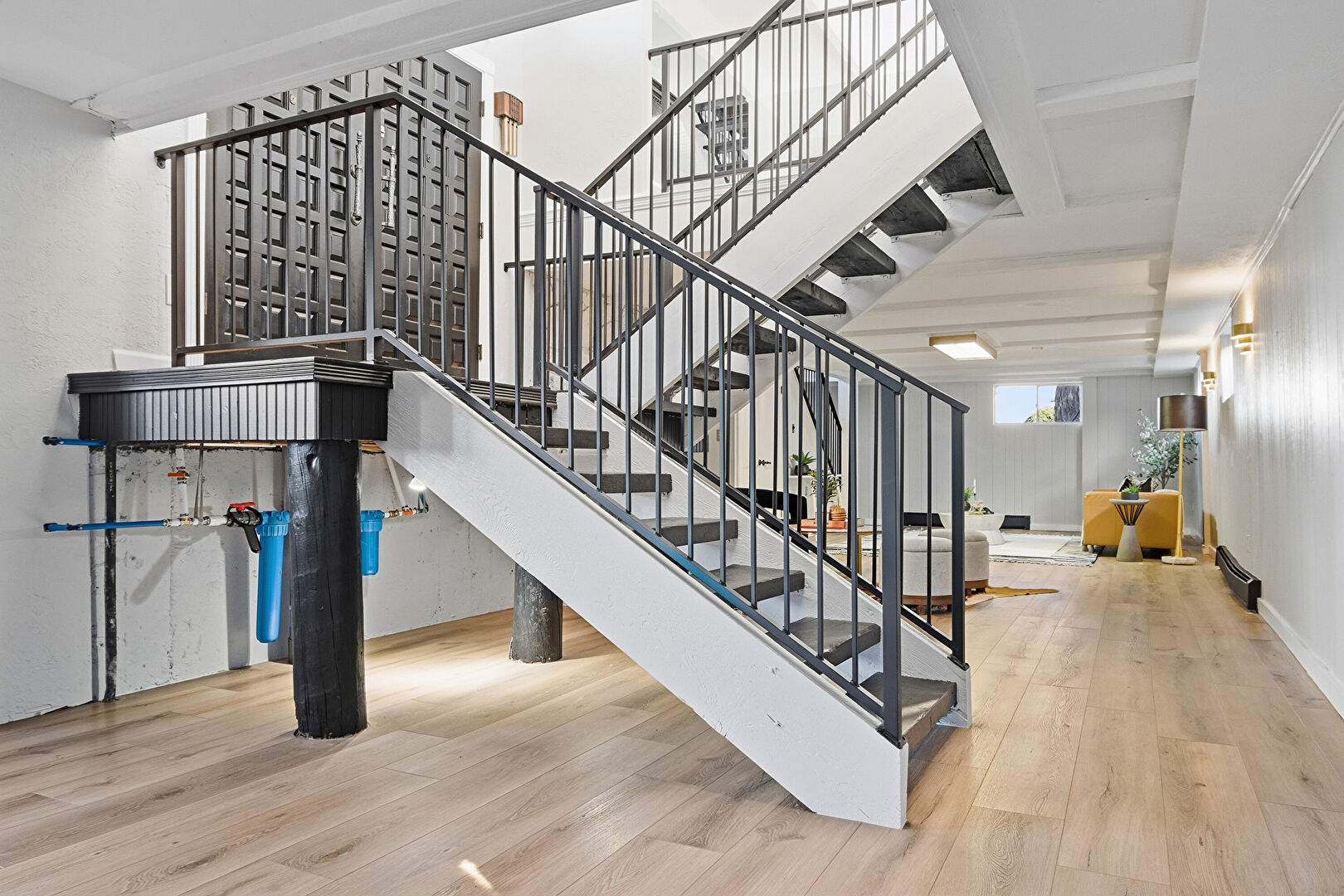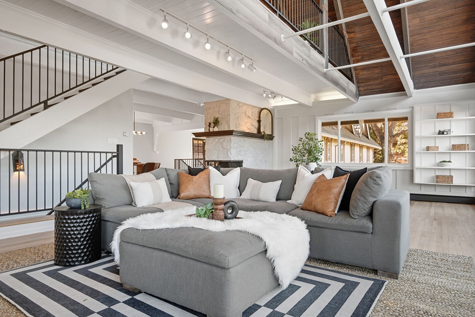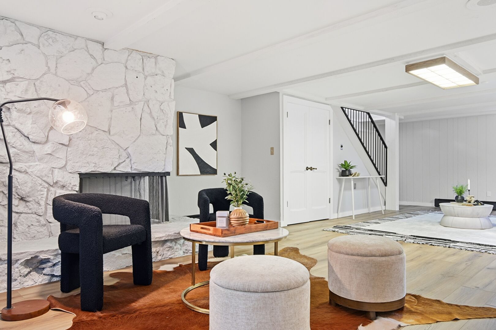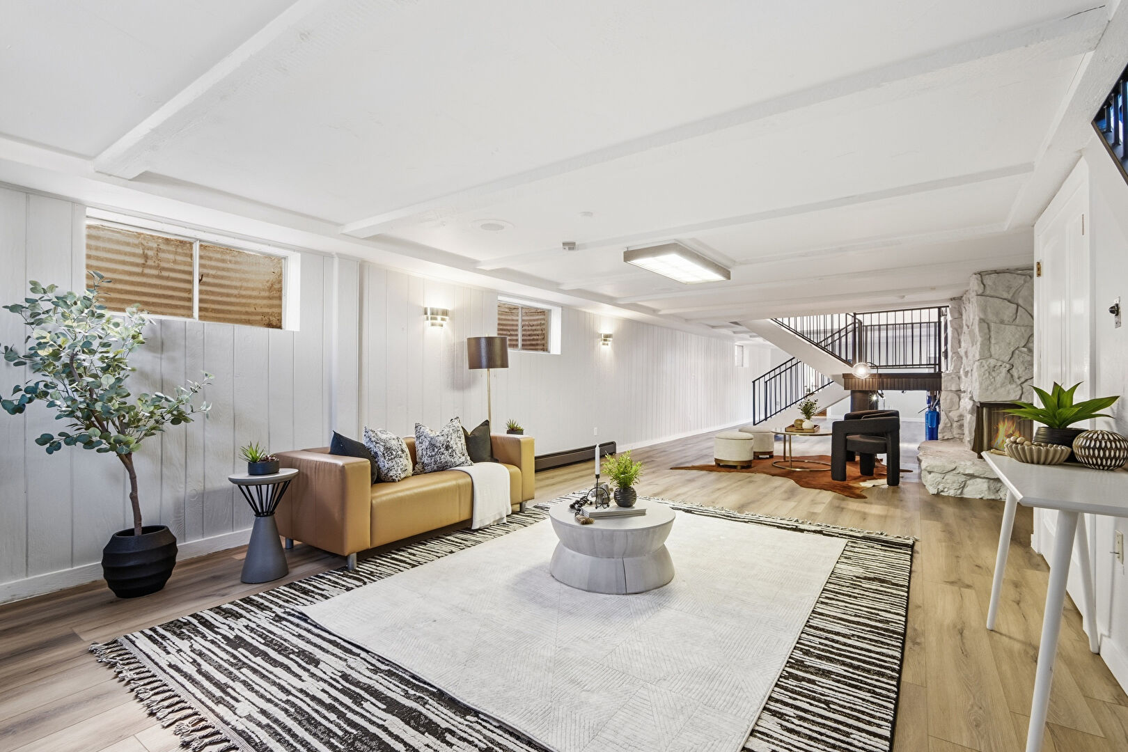 High Ceiling, Natural Light, Stairs, Wood Finish Floor, Baseboards Wall