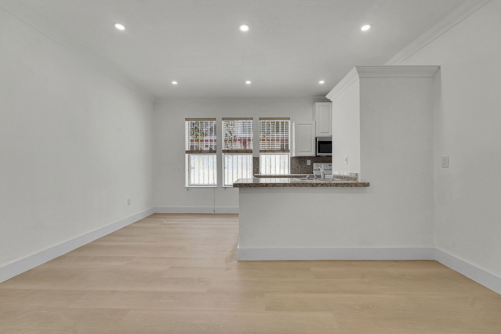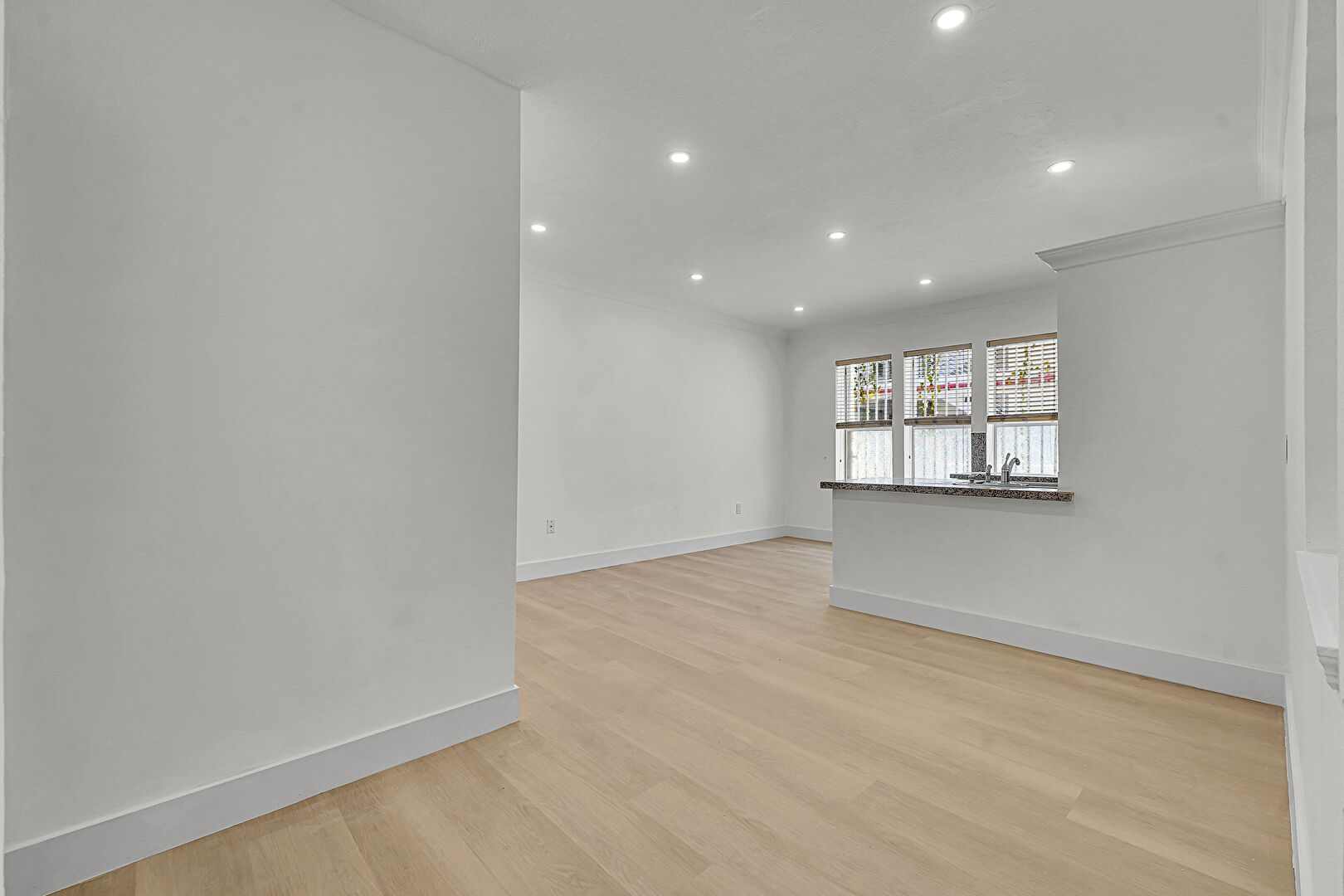 Baseboards Wall, Crown Molding, Natural Light, Recessed Lighting, Wood Finish Floor, Drywall