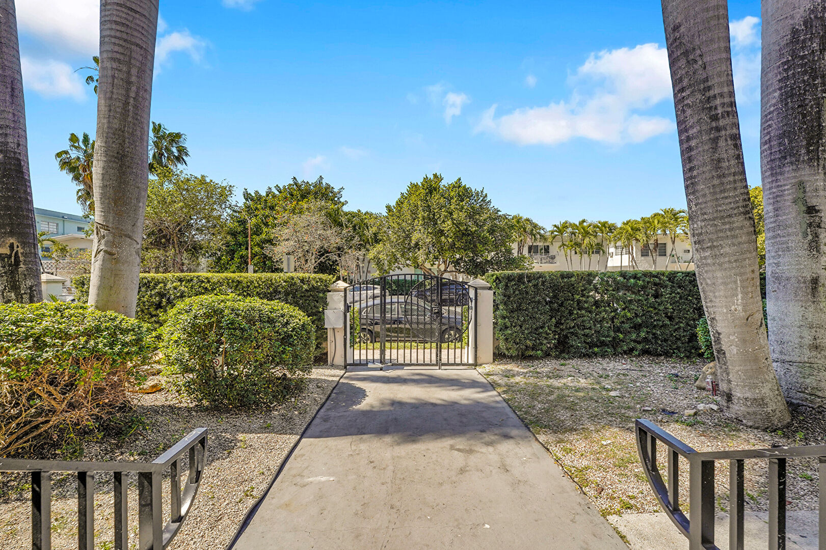 Fence, French Doors, Gate, Stucco Siding, Apartment Complex View, Stoop, Stucco Siding
