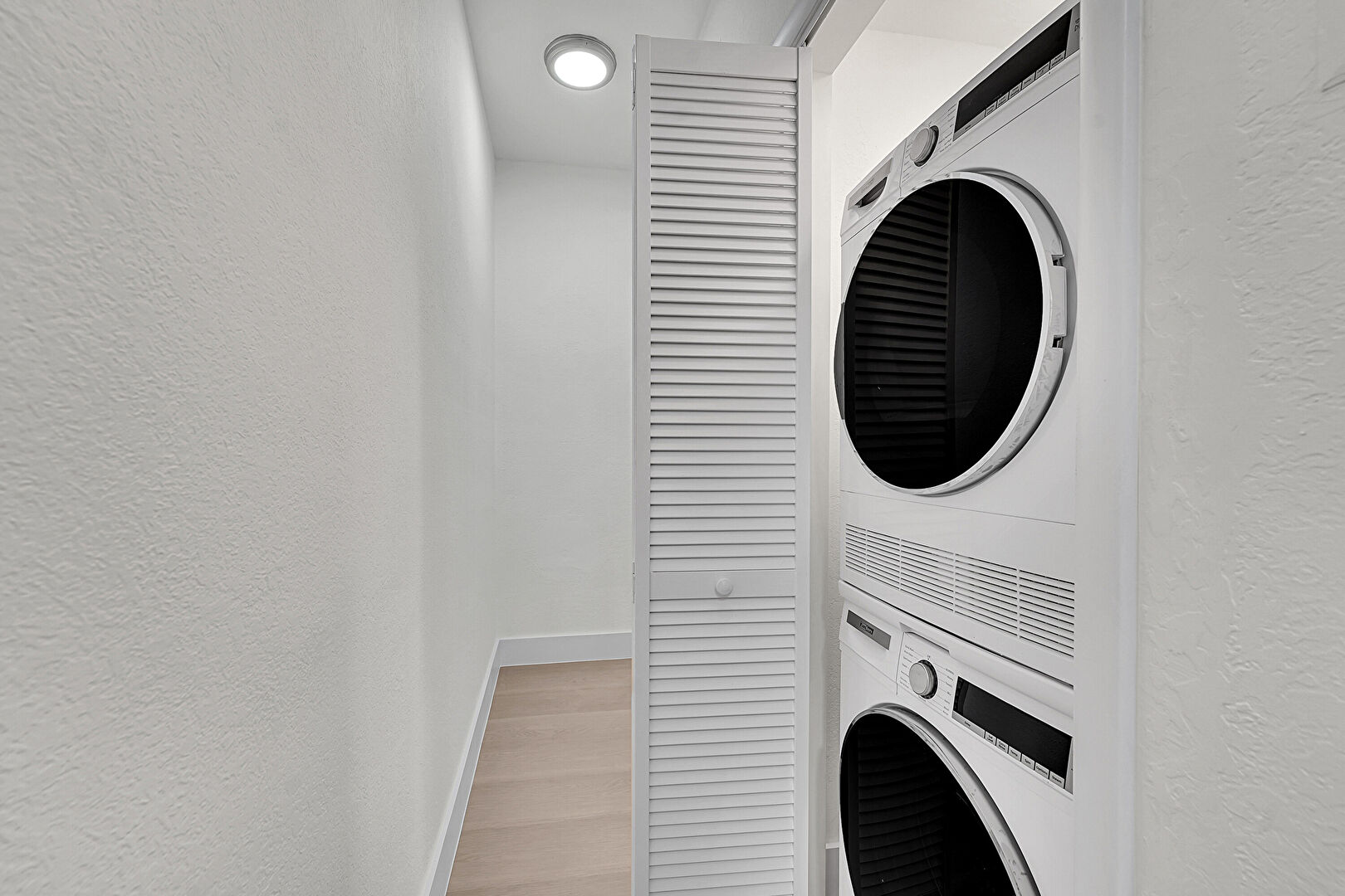 Baseboards Wall, Laundry, Wood Finish Floor, Textured Wall