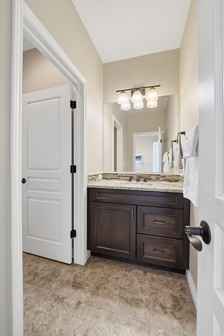 Baseboards Wall, Combined Bath Shower, Drywall, Full Bathroom, Half Bathroom, Vanity, Vent, Full Bathroom, Half Bathroom, Tile Floor, Vanity
