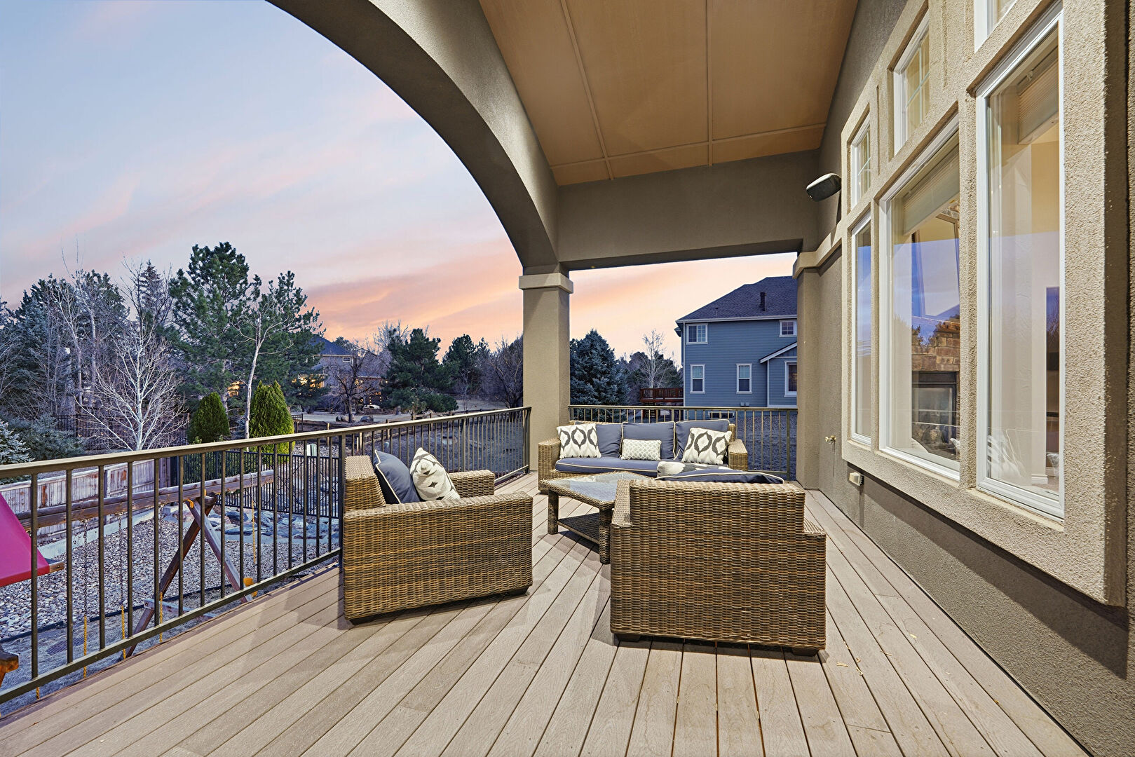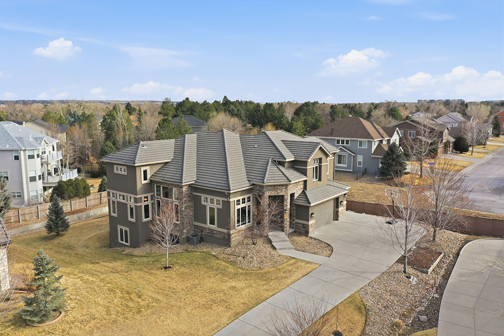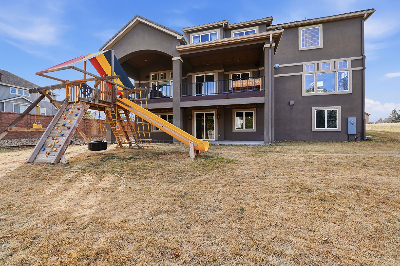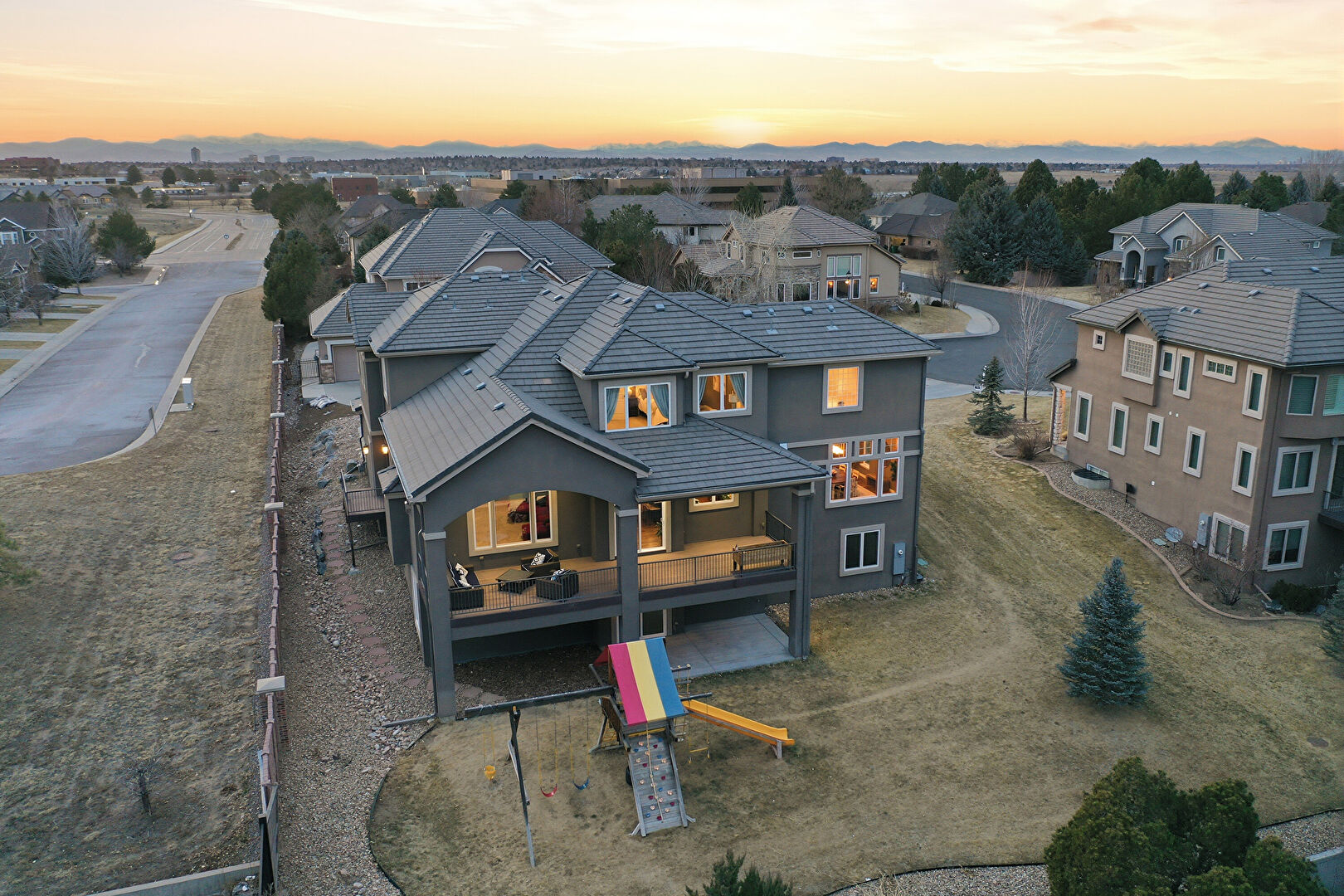 Balcony, Basement Walk Out, Built In Garage, Central Ac, Concrete Foundation, Deck, Downspout, Driveway, Electric Meter, Fence, Gutters, Lawn, Patio, Playground, Porch, Residential View, Stone Siding, Stoop, Stucco Siding, Tile Roof, Central Ac, Downspout, Driveway, Electric Meter, Gutters, Mountain View, Outdoor Living Space, Patio, Residential View, Stoop, Stucco Siding, Tile Roof