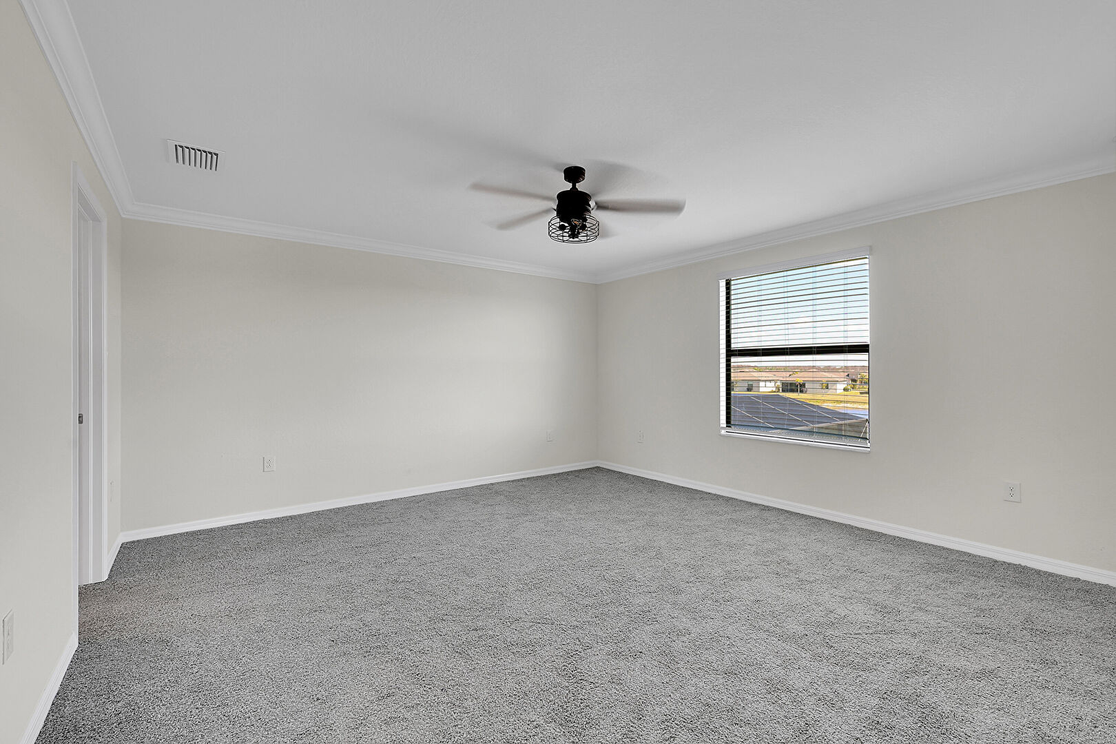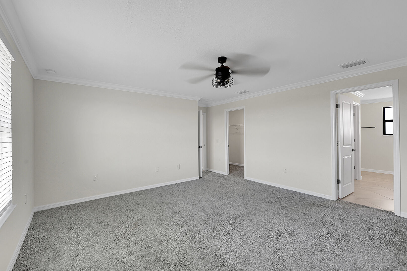 Baseboards Wall, Carpet, Ceiling Fan, Crown Molding, Drywall, Natural Light, Vent, Walk In Closet, Crown Molding, Drywall