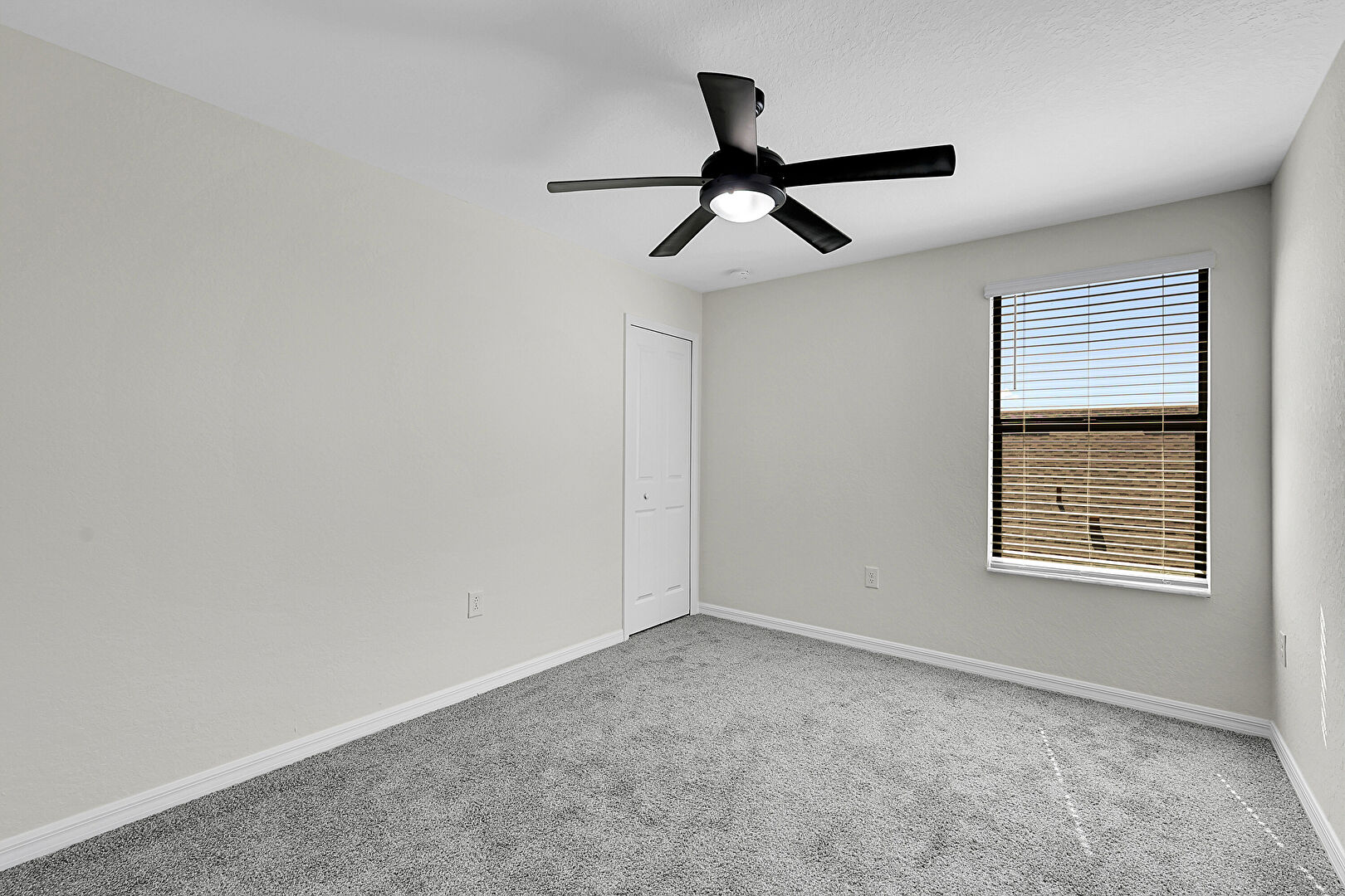 Baseboards Wall, Carpet, Ceiling Fan, Drywall, Natural Light