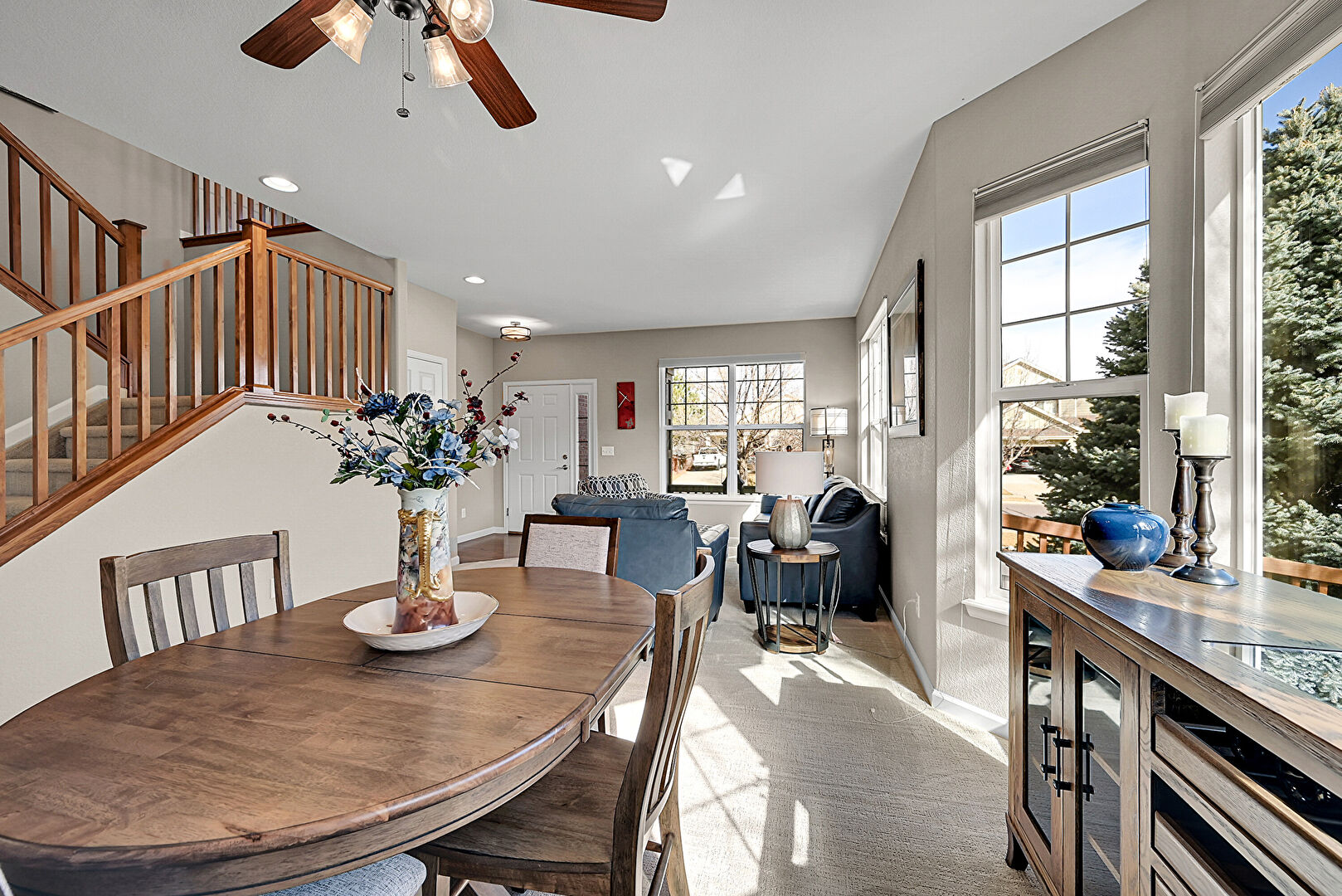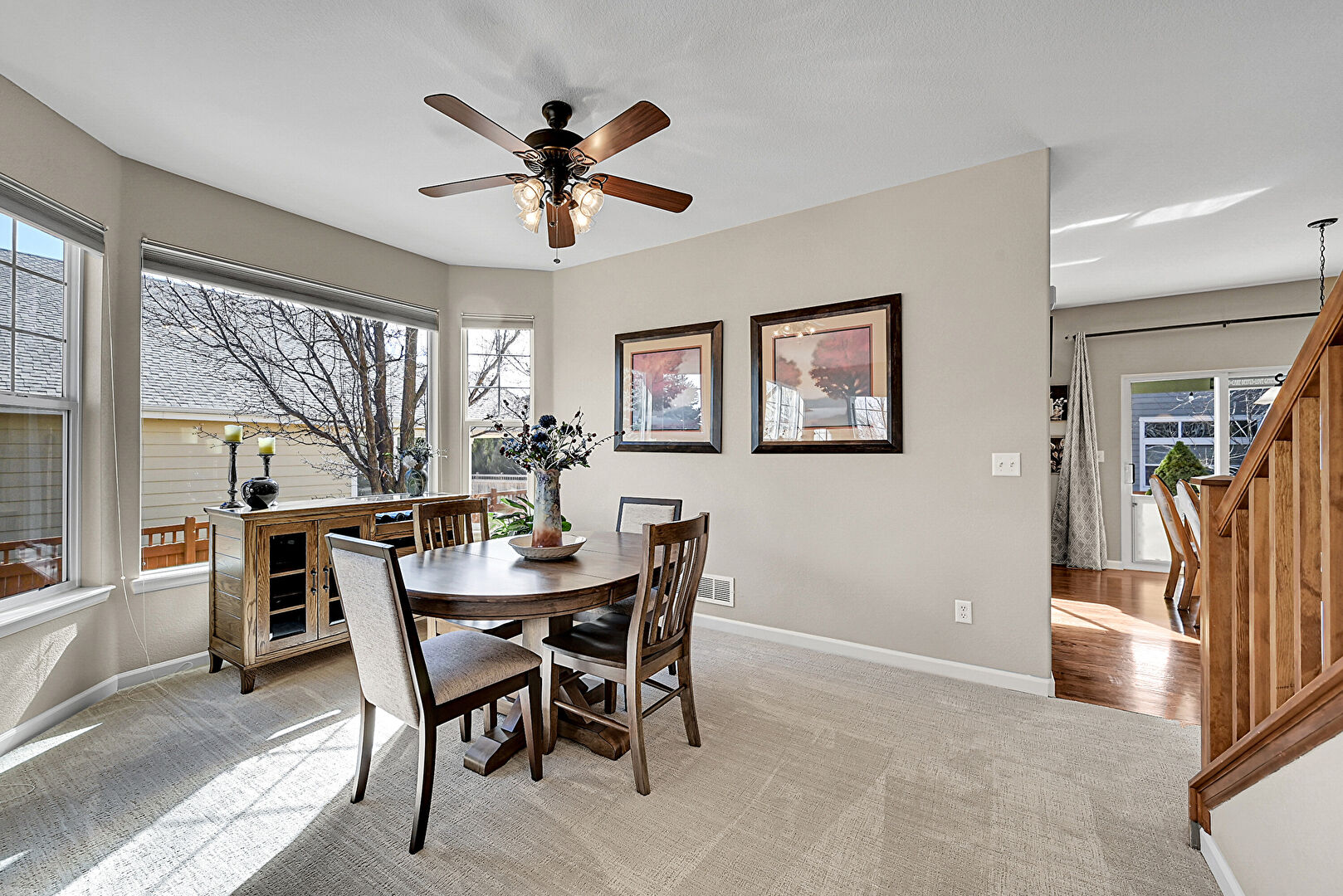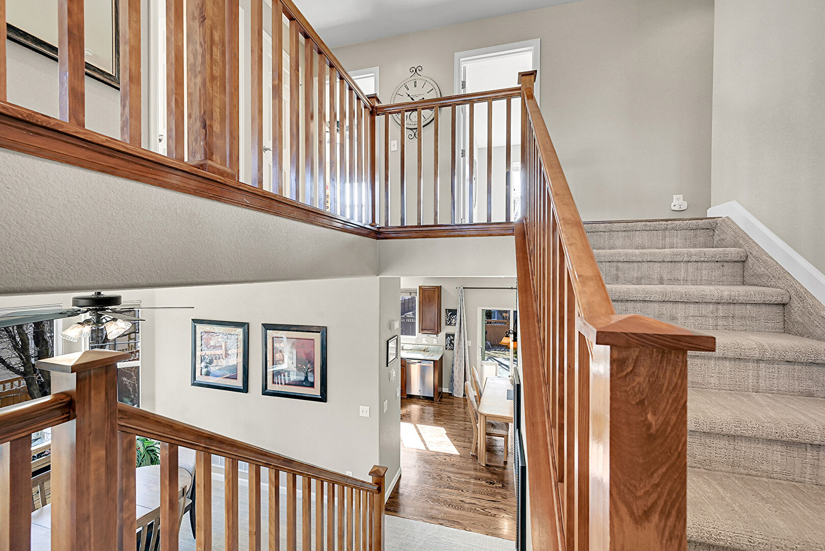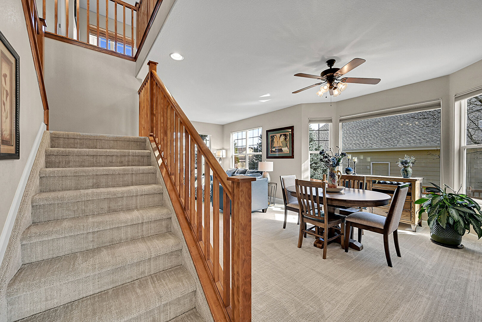 Baseboards Wall, Carpet, Ceiling Fan, Drywall, Natural Light, Recessed Lighting, Wood Finish Floor, Drywall, Natural Light, Stairs