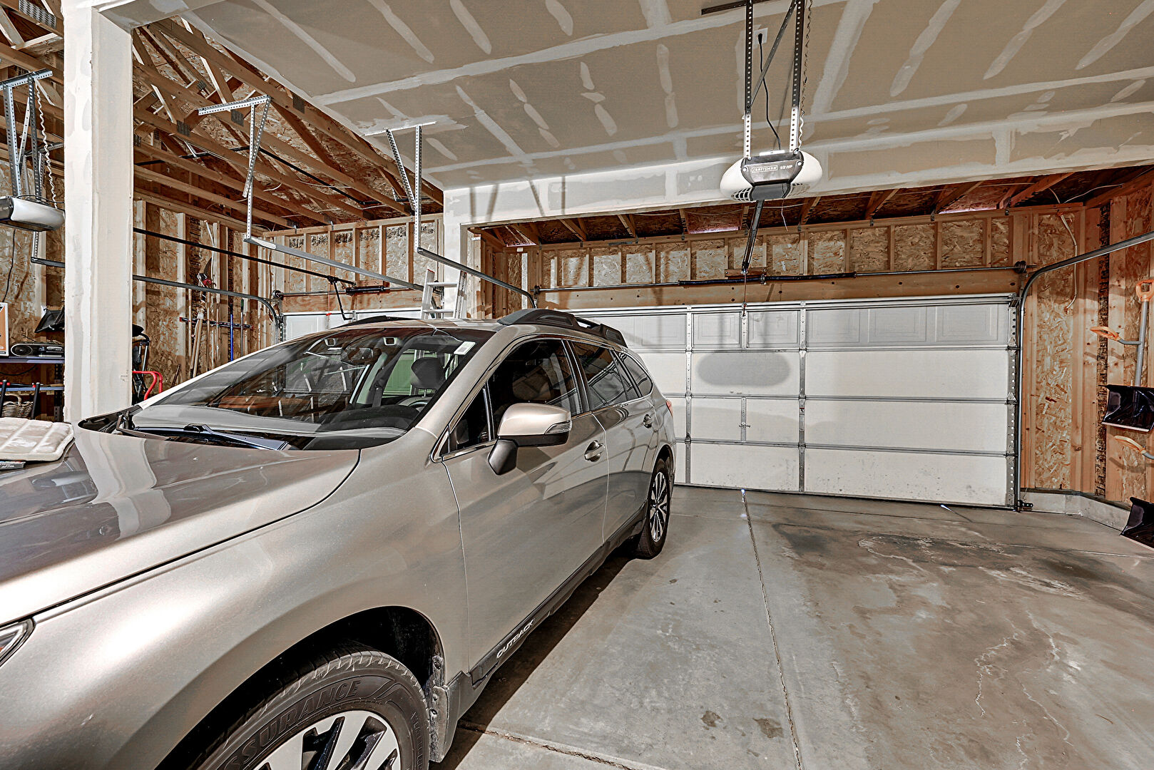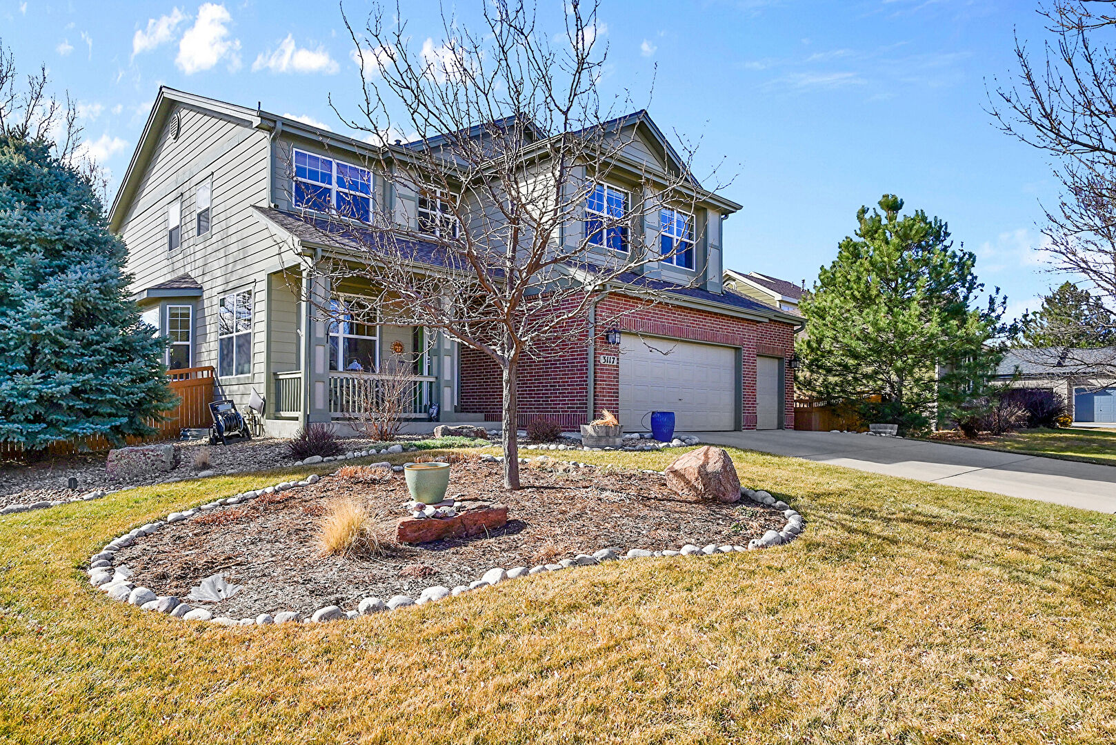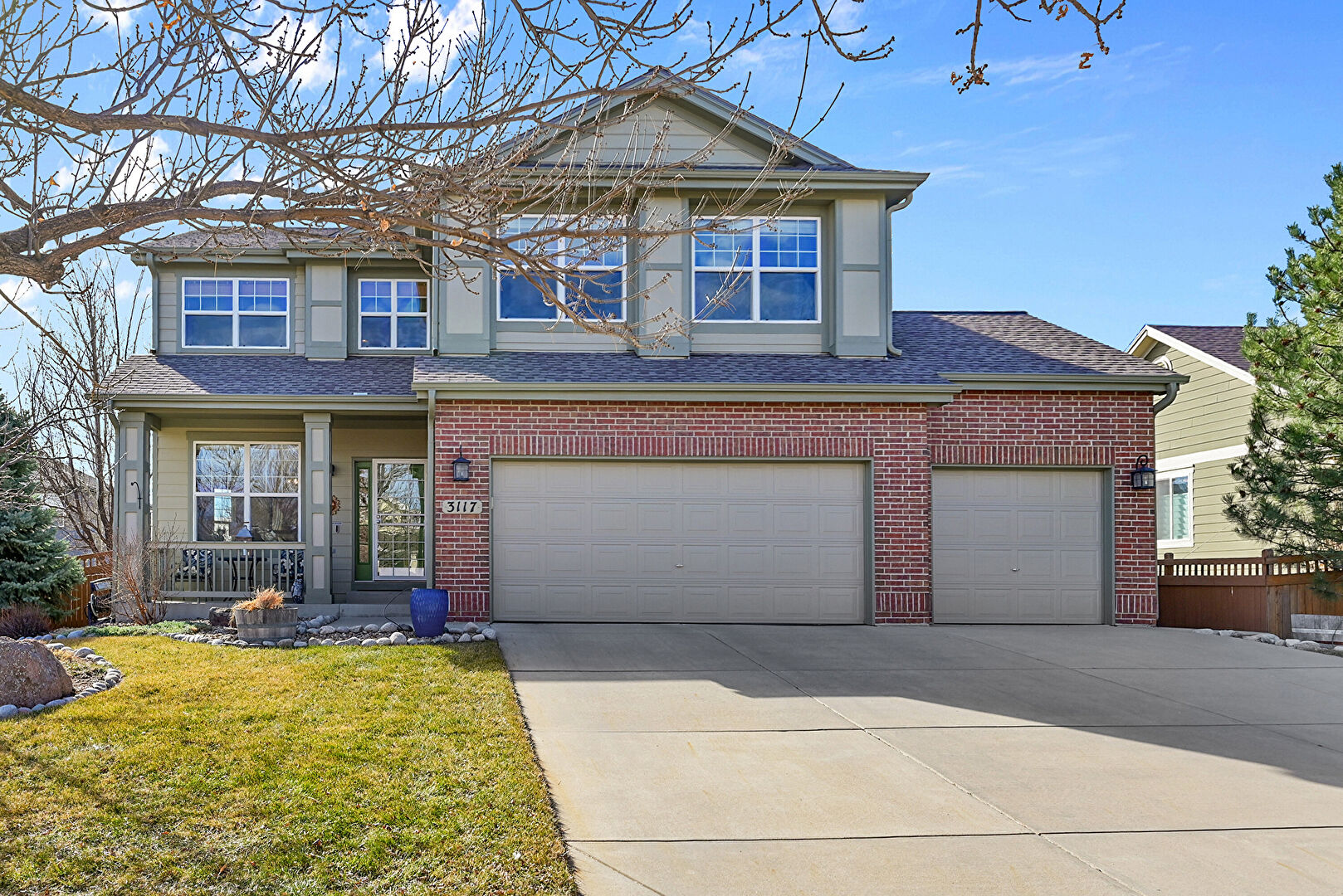 Brick Siding, Built In Garage, Downspout, Driveway, Gutters, Horizontal Siding, Lawn, Porch, Shingle Roof, Stucco Siding, Brick Siding, Downspout, Fence