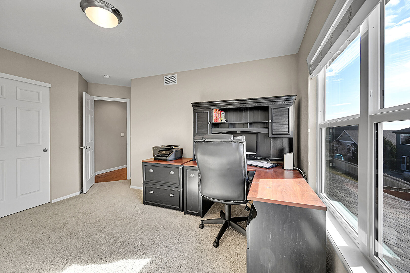 Baseboards Wall, Carpet, Drywall, Natural Light, Office Area, Vent, Natural Light, Textured Wall