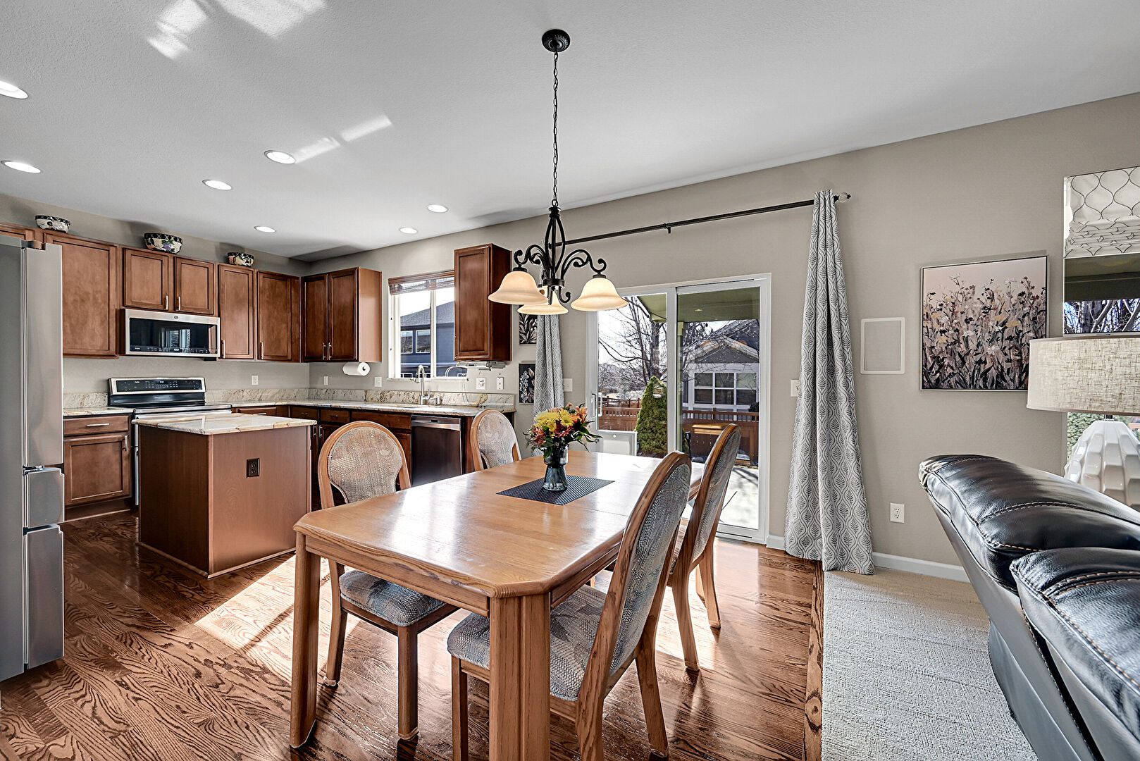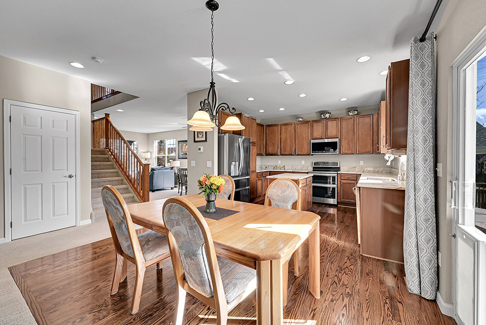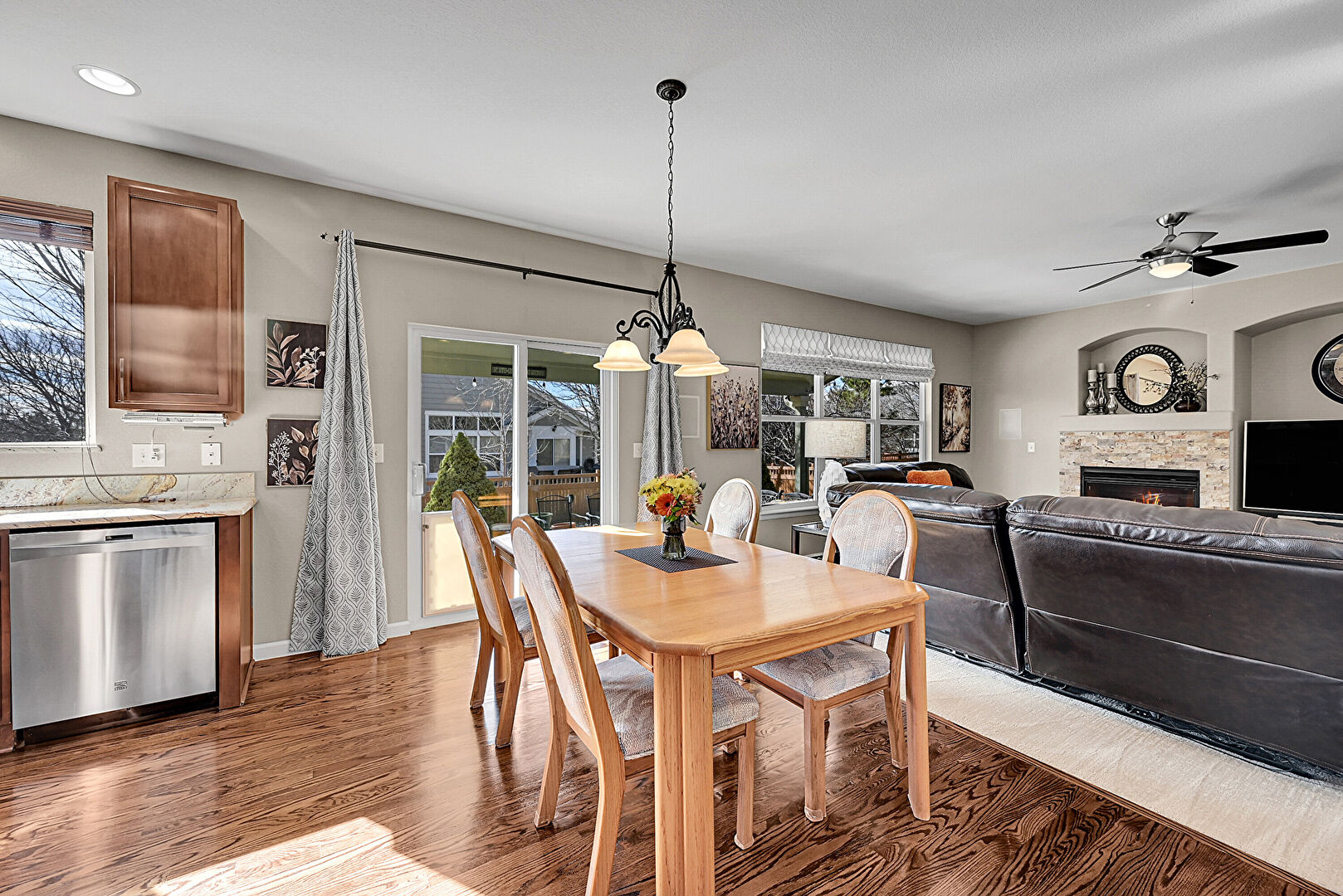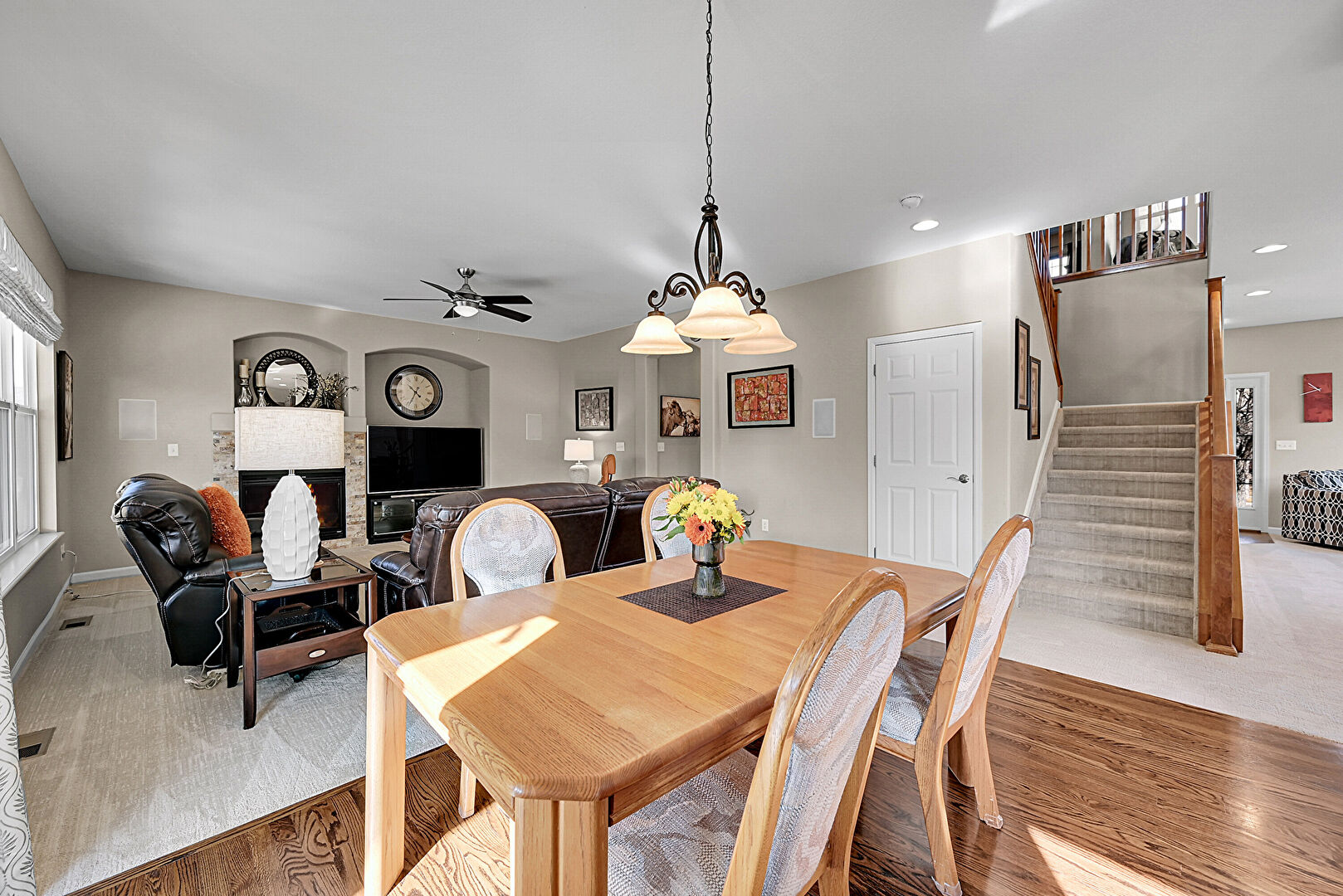 Arched Walkways, Baseboards Wall, Carpet, Ceiling Fan, Drywall, Fireplace, Natural Light, Notable Chandelier, Recessed Lighting, Stairs, U Shaped Kitchen, Vent, Wood Finish Floor, Ceiling Fan, Drywall, Natural Light, Recessed Lighting, Stairs, Textured Wall, U Shaped Kitchen, Wood Finish Floor