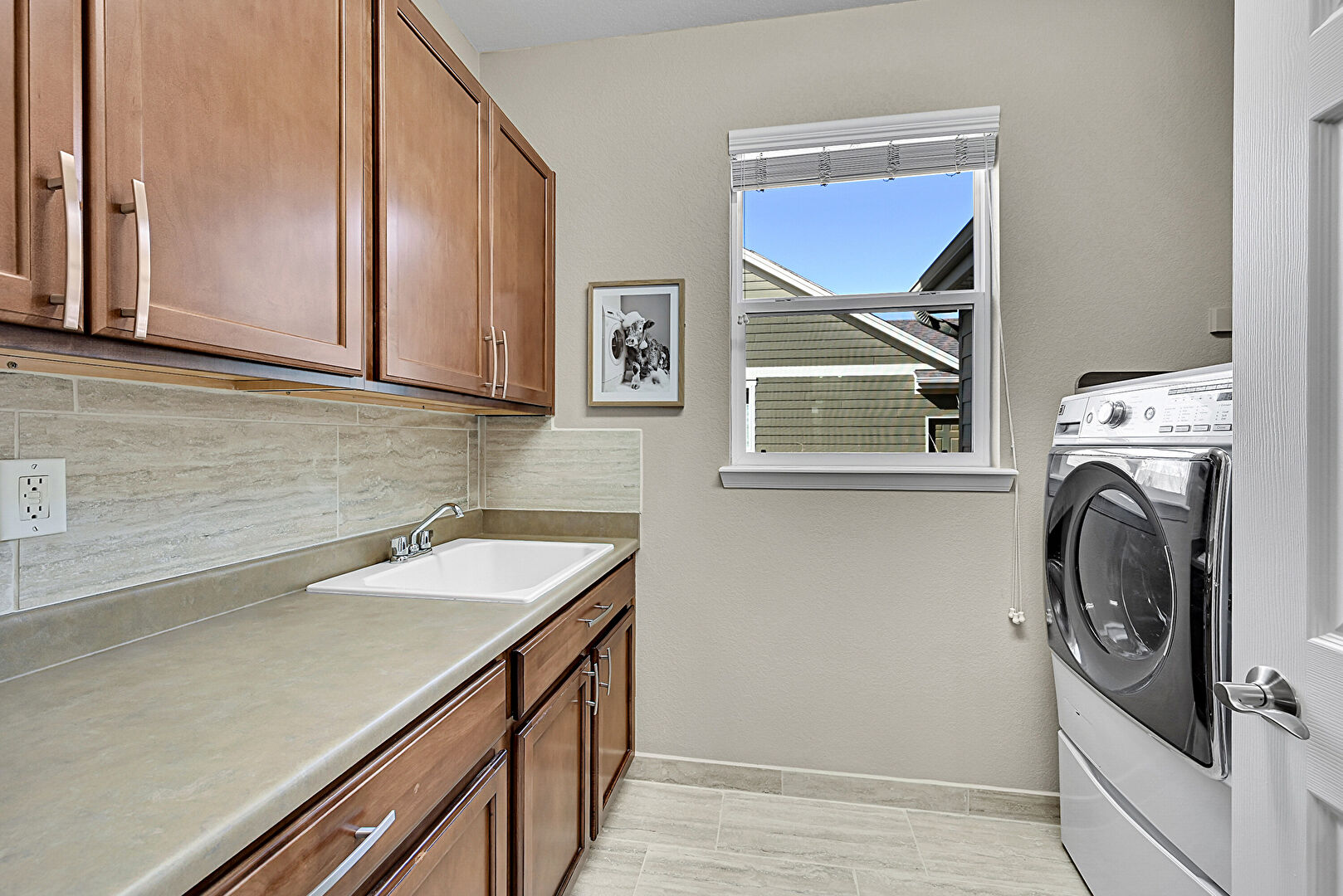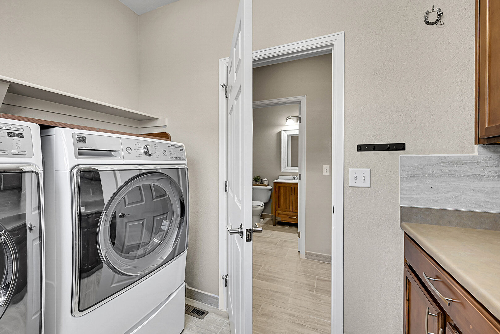 Baseboards Wall, Laundry, Natural Light, Textured Wall, Vent, Wood Finish Floor, Drywall, Laundry