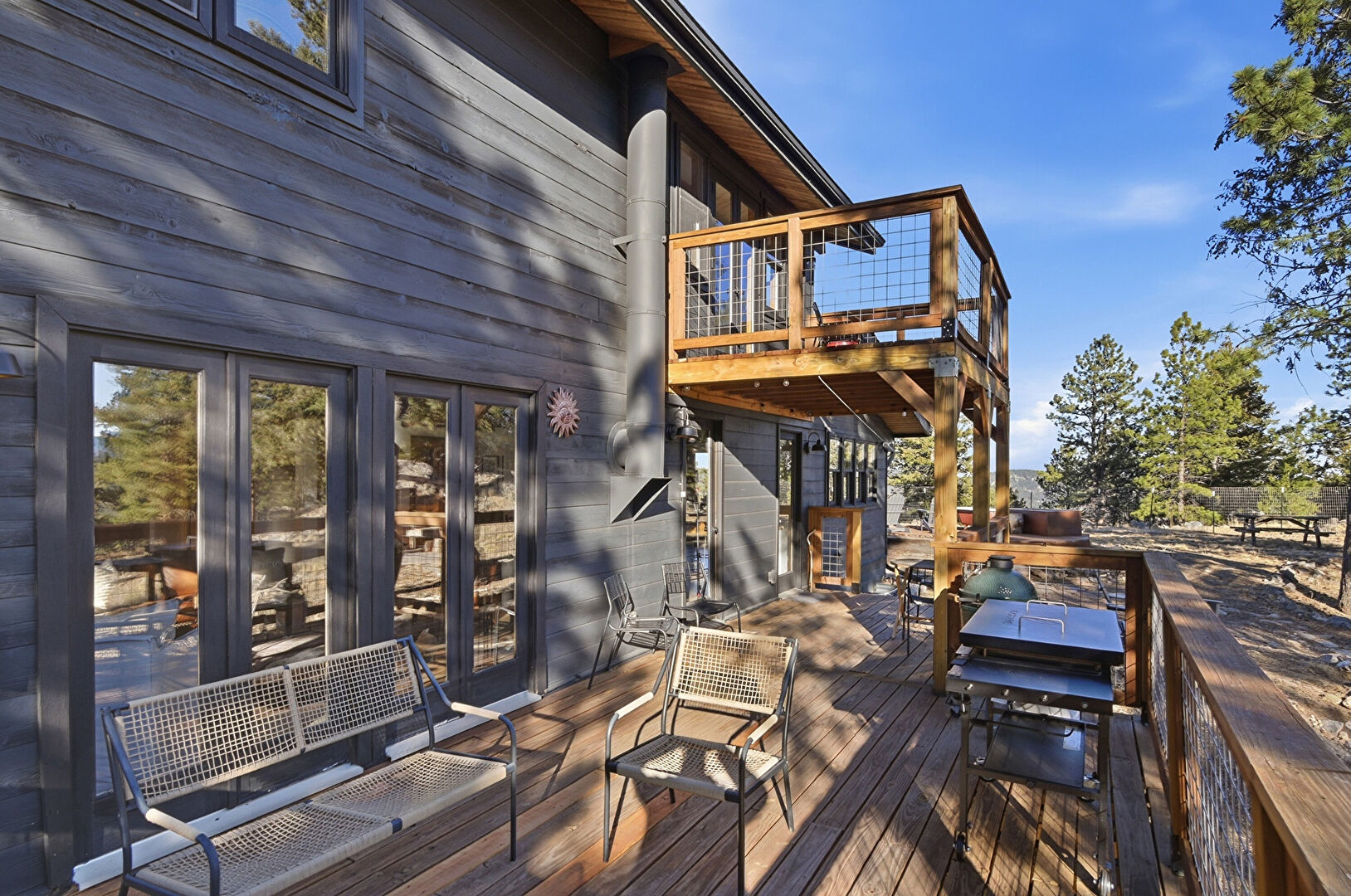 Balcony, Deck, Forest View, French Doors, Grill, Outdoor Living Space, Balcony, Deck, Mountain View, Outdoor Living Space, Stairs, Woods View