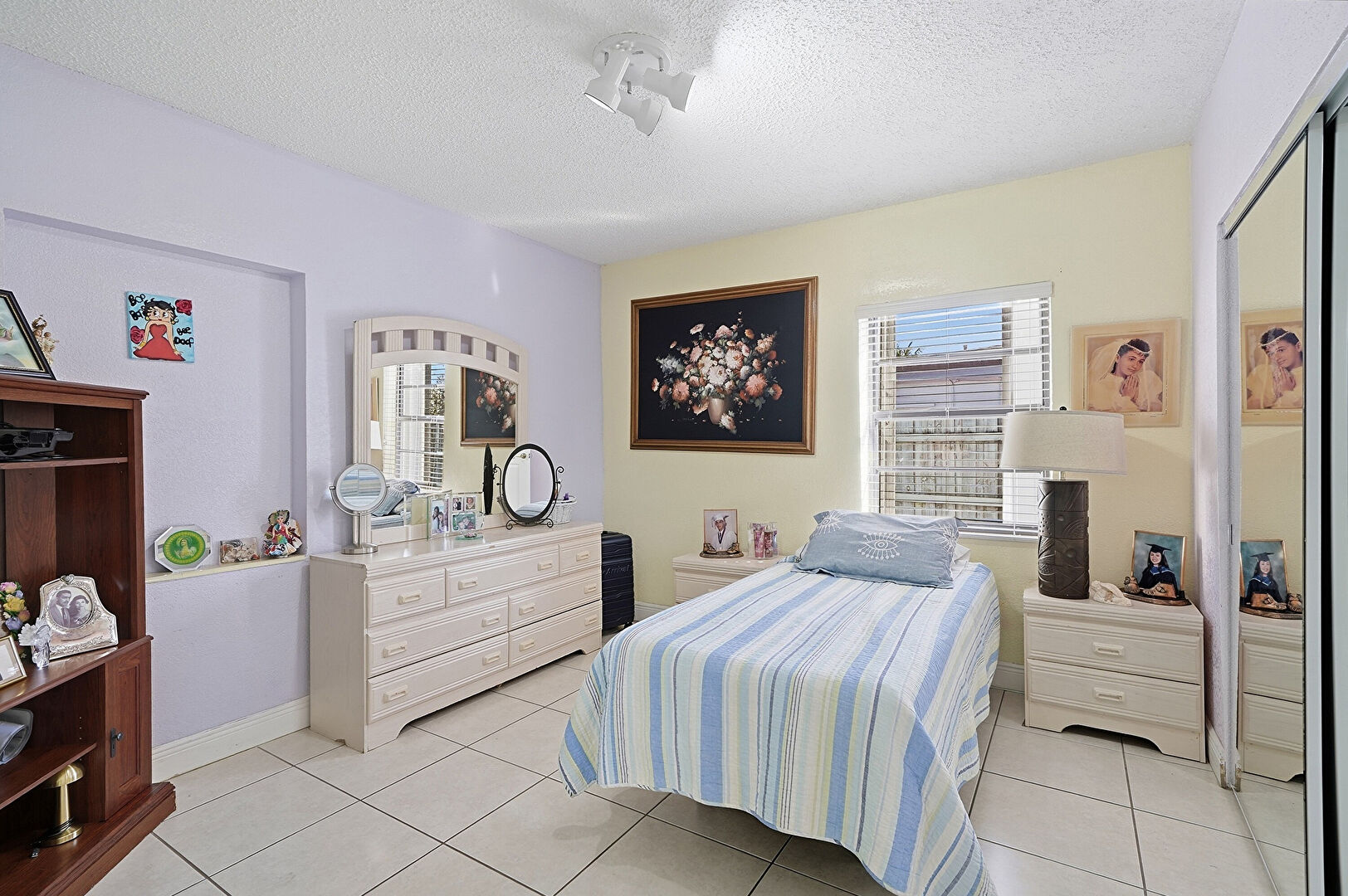 Baseboards Wall, Closet, Drywall, Natural Light, Textured Ceiling, Tile Floor, Track Lighting, Vent, Access To Exterior, Tile Floor, Track Lighting