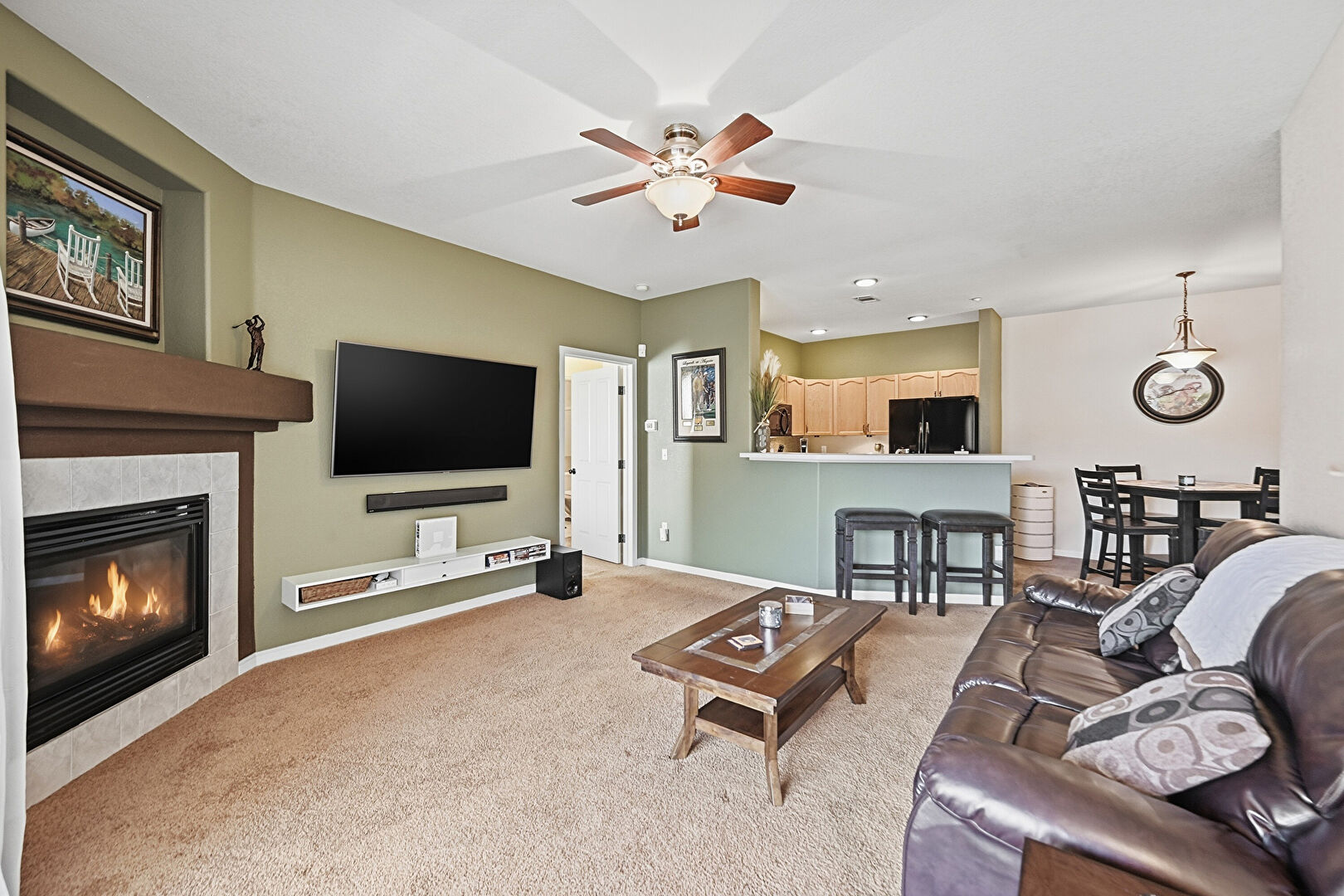 Baseboards Wall, Carpet, Ceiling Fan, Drywall, Fireplace, Natural Light, Recessed Lighting, Smoke Carbon Monoxide Detector, Vent, Carpet, Fireplace