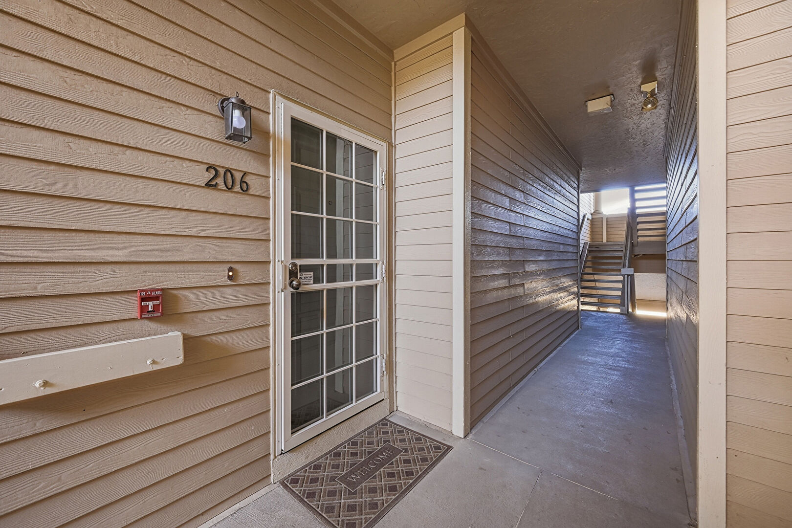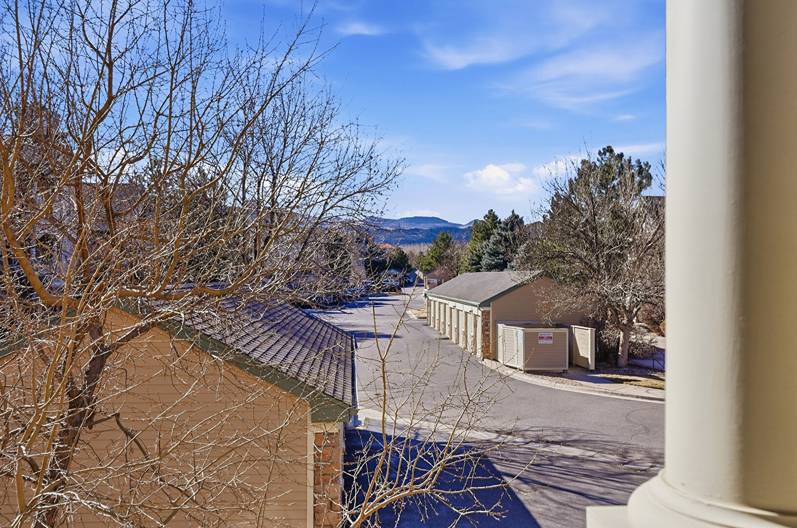 Apartment Complex View, Central Ac, Horizontal Siding, Lawn, Satellite Dish, Stone Siding, Balcony