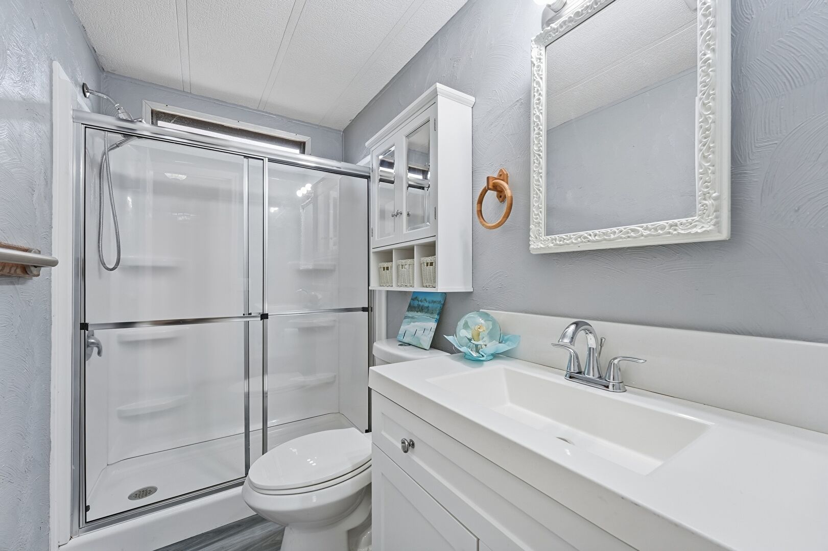 Full Bathroom, Textured Ceiling, Vanity, Textured Wall