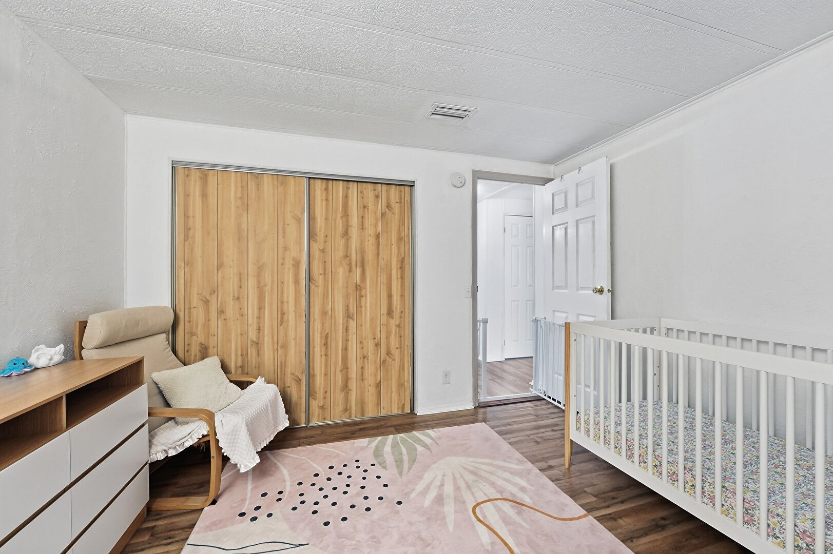 Baseboards Wall, Closet, Drywall, Natural Light, Nursery, Textured Ceiling, Vent, Wood Finish Floor, Baseboards Wall, Drywall, Wood Finish Floor