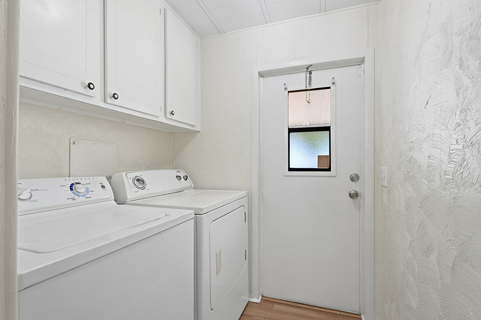 Laundry, Natural Light, Wood Finish Floor