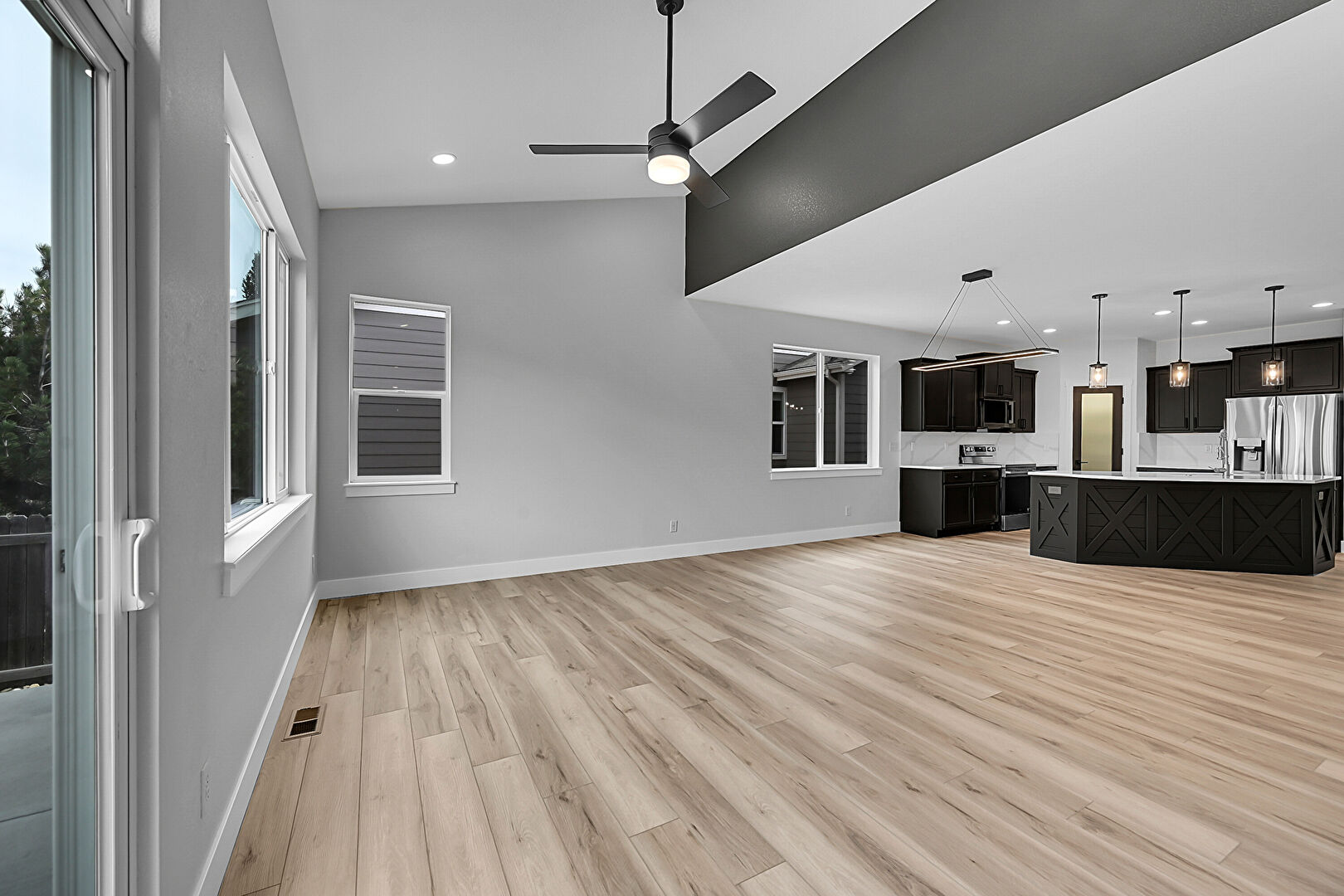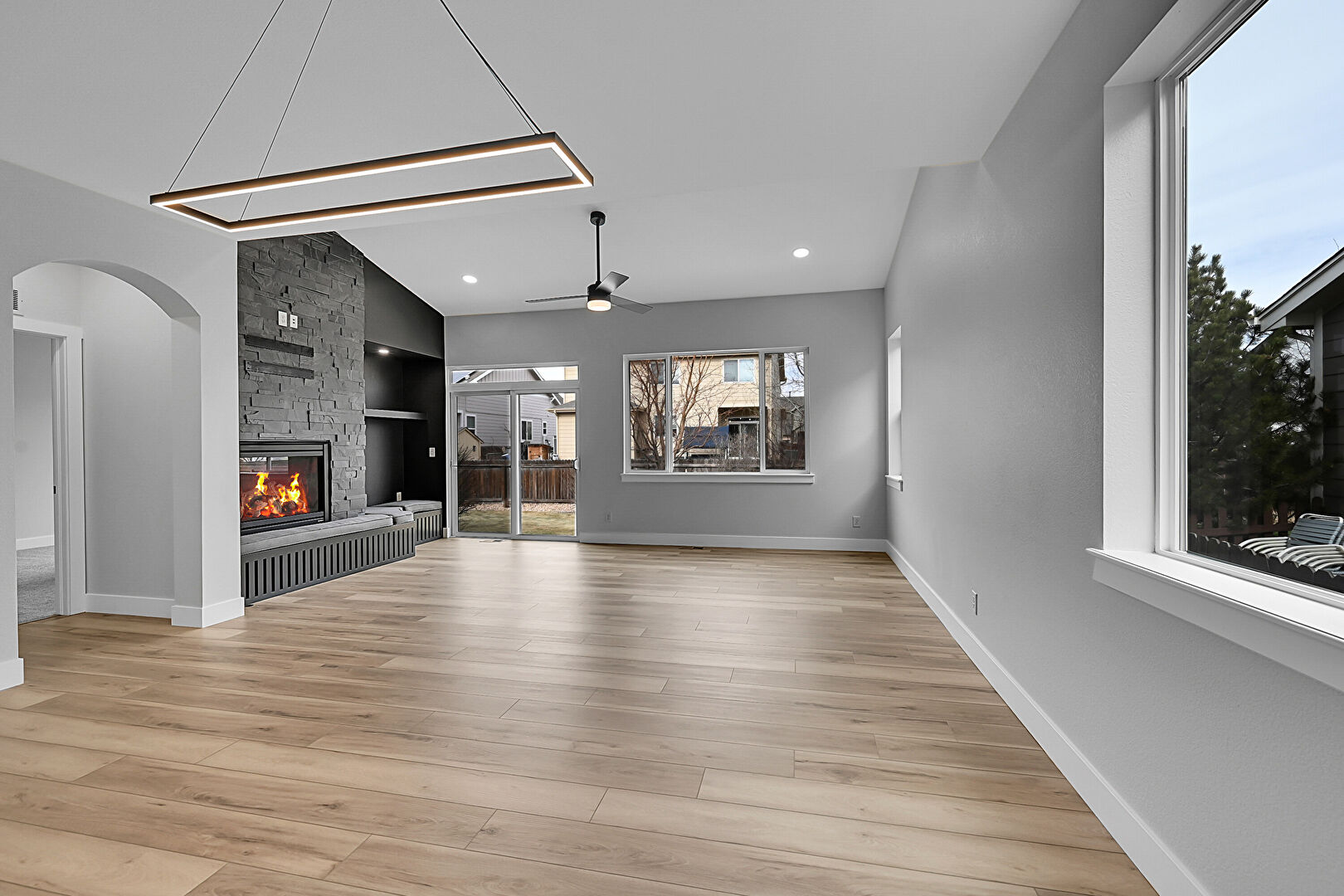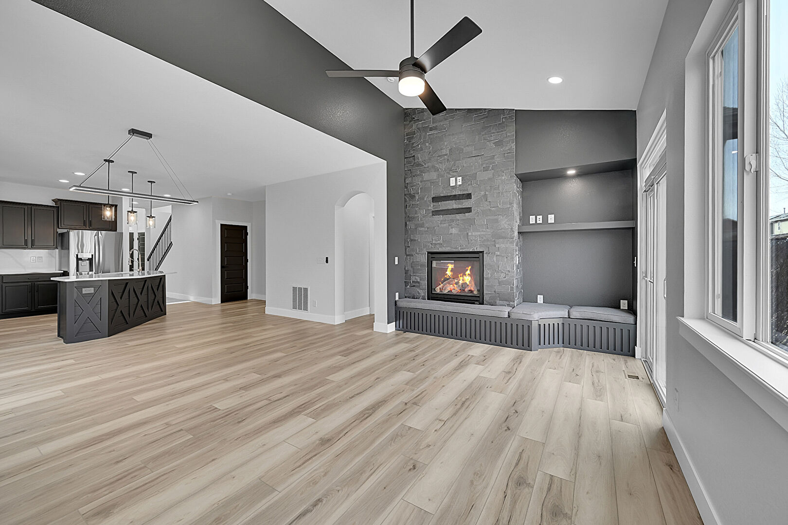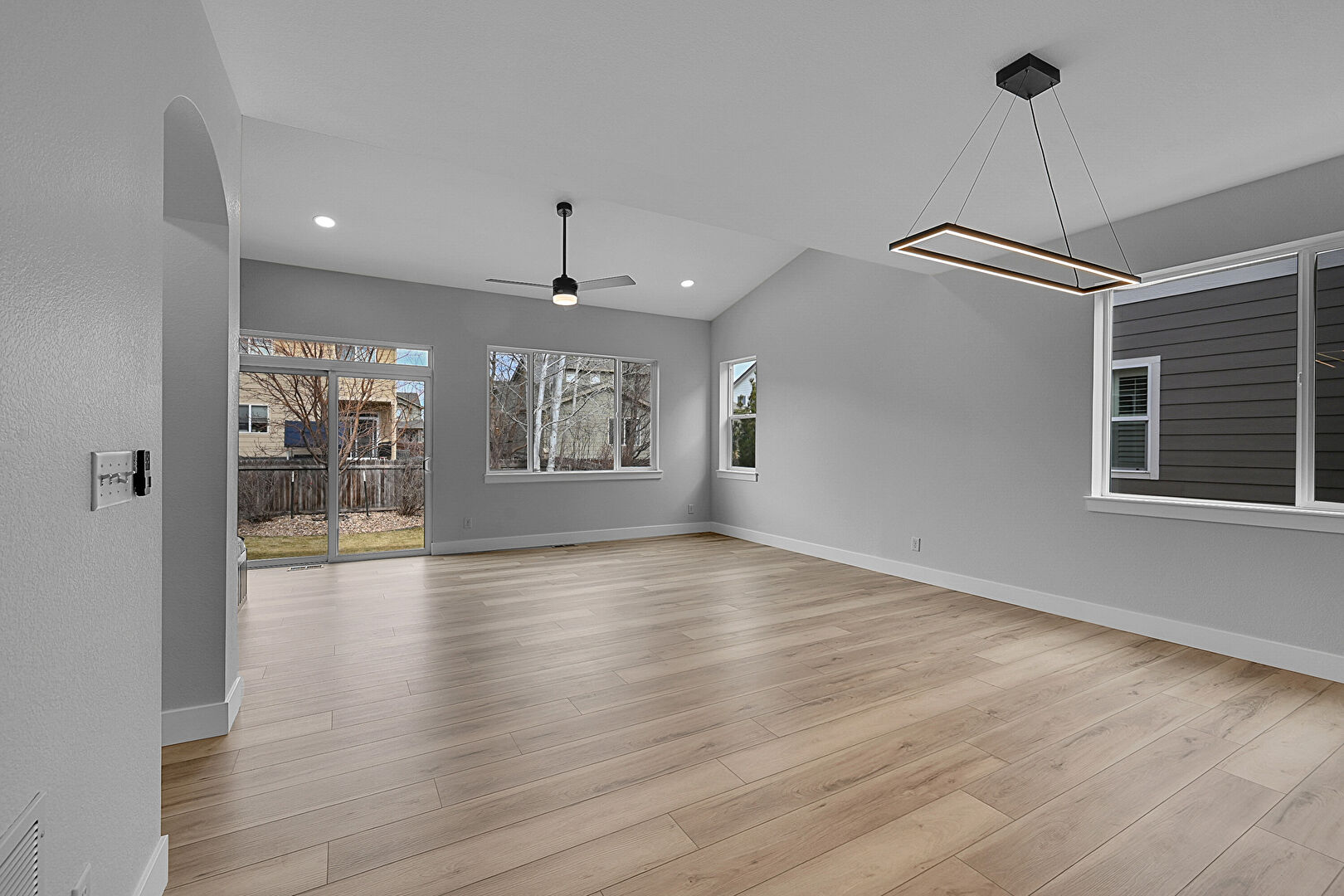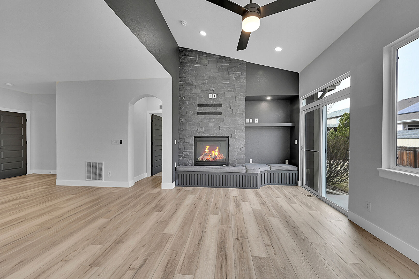 Arched Walkways, Baseboards Wall, Built In Shelves, Ceiling Fan, Drywall, Fireplace, High Ceiling, L Shaped Kitchen, Natural Light, Recessed Lighting, Stairs, Vaulted Ceiling, Vent, Wood Finish Floor, Arched Walkways, Baseboards Wall, High Ceiling, Wood Finish Floor