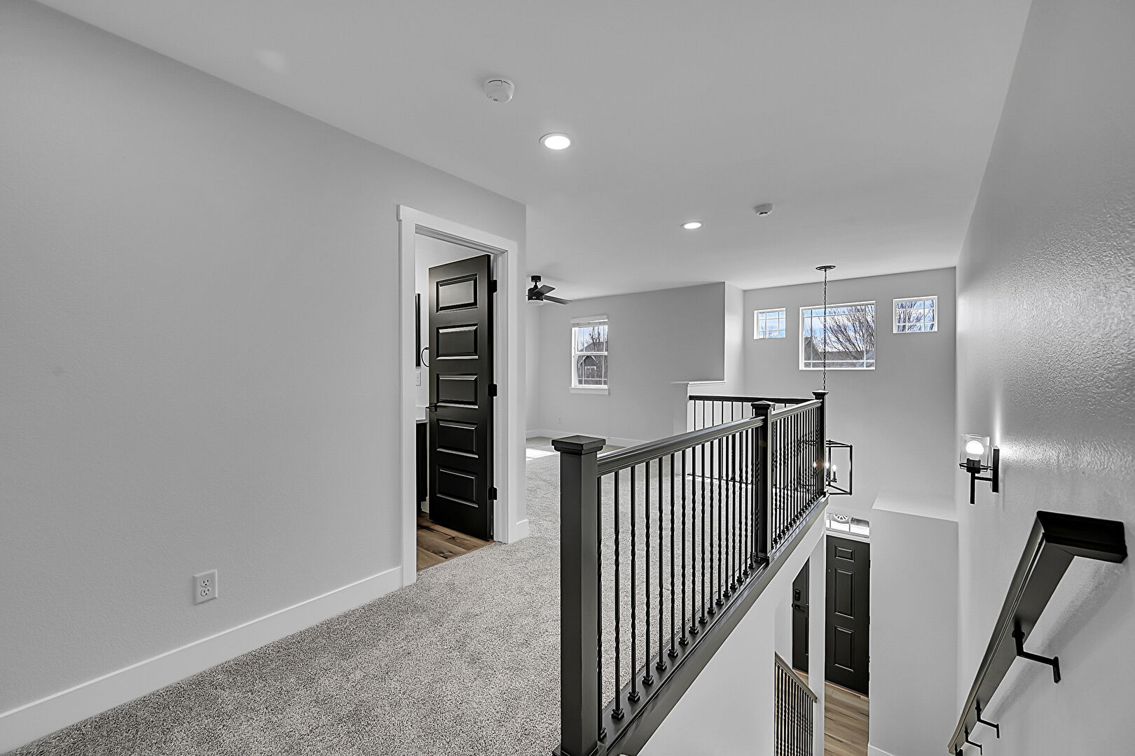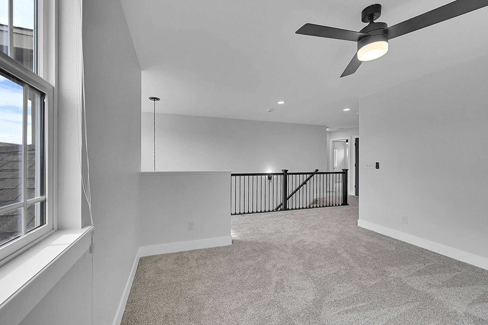 Baseboards Wall, Carpet, Ceiling Fan, Drywall, Loft, Natural Light, Recessed Lighting, Smoke Carbon Monoxide Detector, Upstairs Landing, Vent, Drywall, Recessed Lighting
