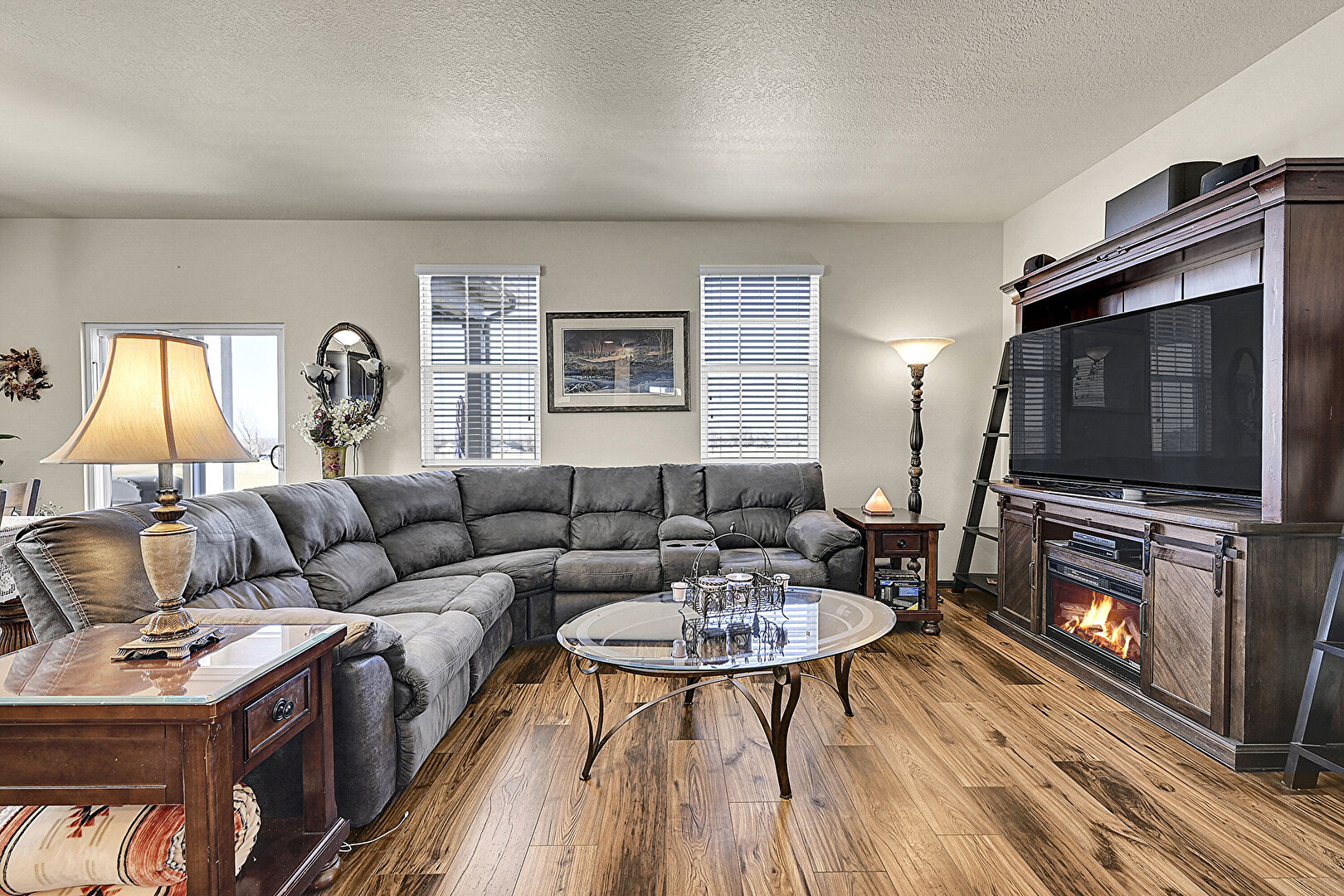 Baseboards Wall, Drywall, Fireplace, Natural Light, Textured Ceiling, Wood Finish Floor, Drywall, Natural Light, Wood Finish Floor