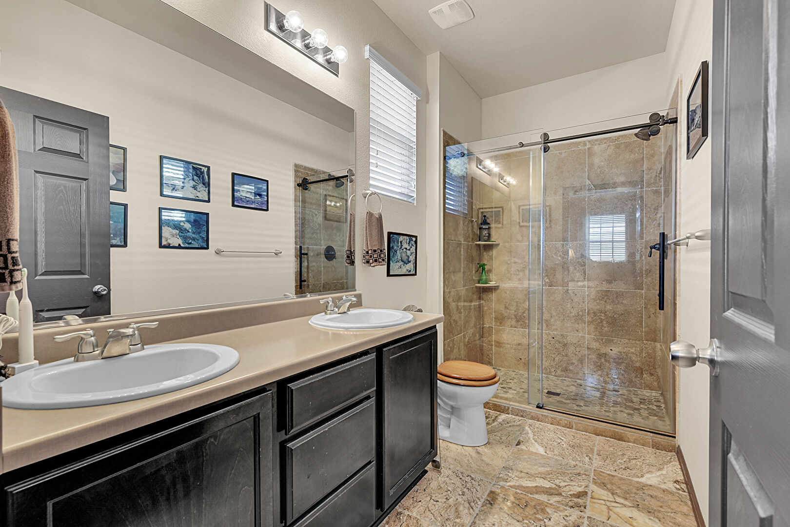 Double Vanity, Drywall, Full Bathroom, Natural Light, Vent, Stone Finish Floor