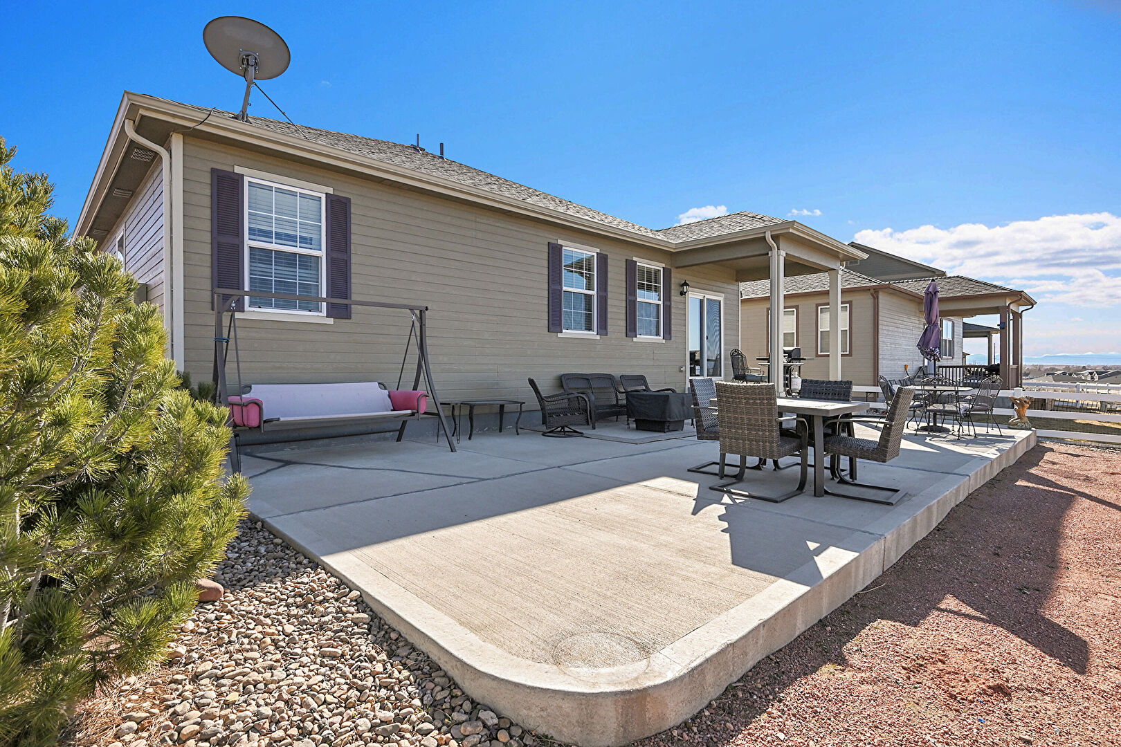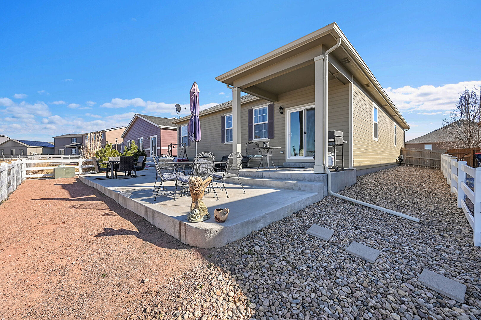 Concrete Foundation, Downspout, Fence, Grill, Gutters, Horizontal Siding, Outdoor Dining Area, Patio, Residential View, Satellite Dish, Gutters, Satellite Dish, Shingle Roof