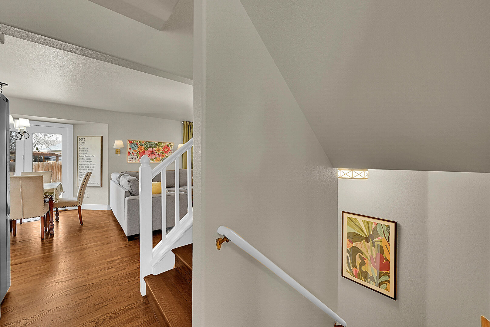 Baseboards Wall, Drywall, Natural Light, Stairs, Textured Ceiling, Vent, Wood Finish Floor, Baseboards Wall, Drywall, Wood Finish Floor