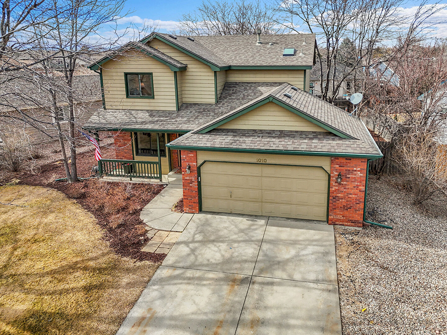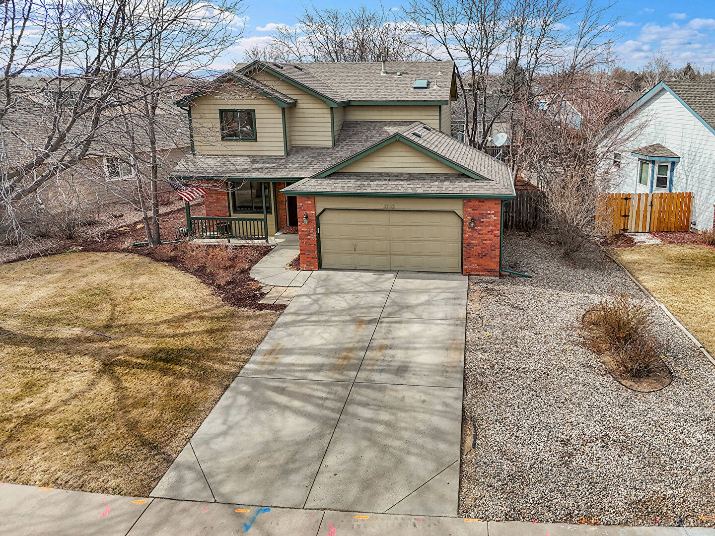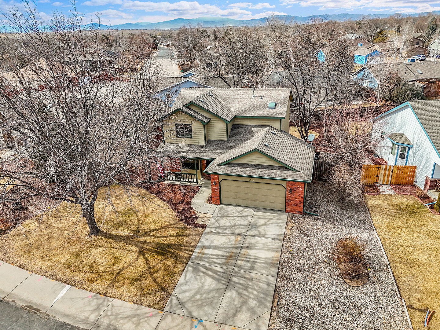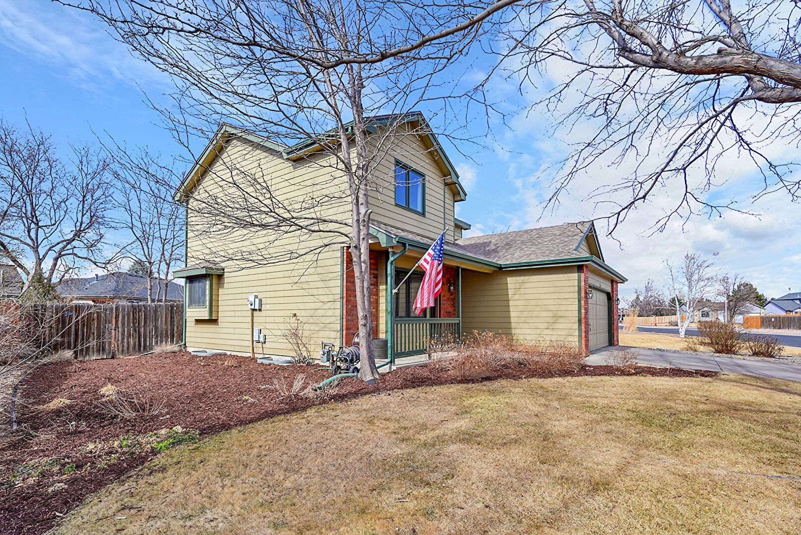 Brick Siding, Downspout, Driveway, Fence, Garden, Gutters, Horizontal Siding, Lawn, Mountain View, Porch, Residential View, Satellite Dish, Shingle Roof, Fence, Horizontal Siding, Lawn, Mountain View, Patio, Residential View