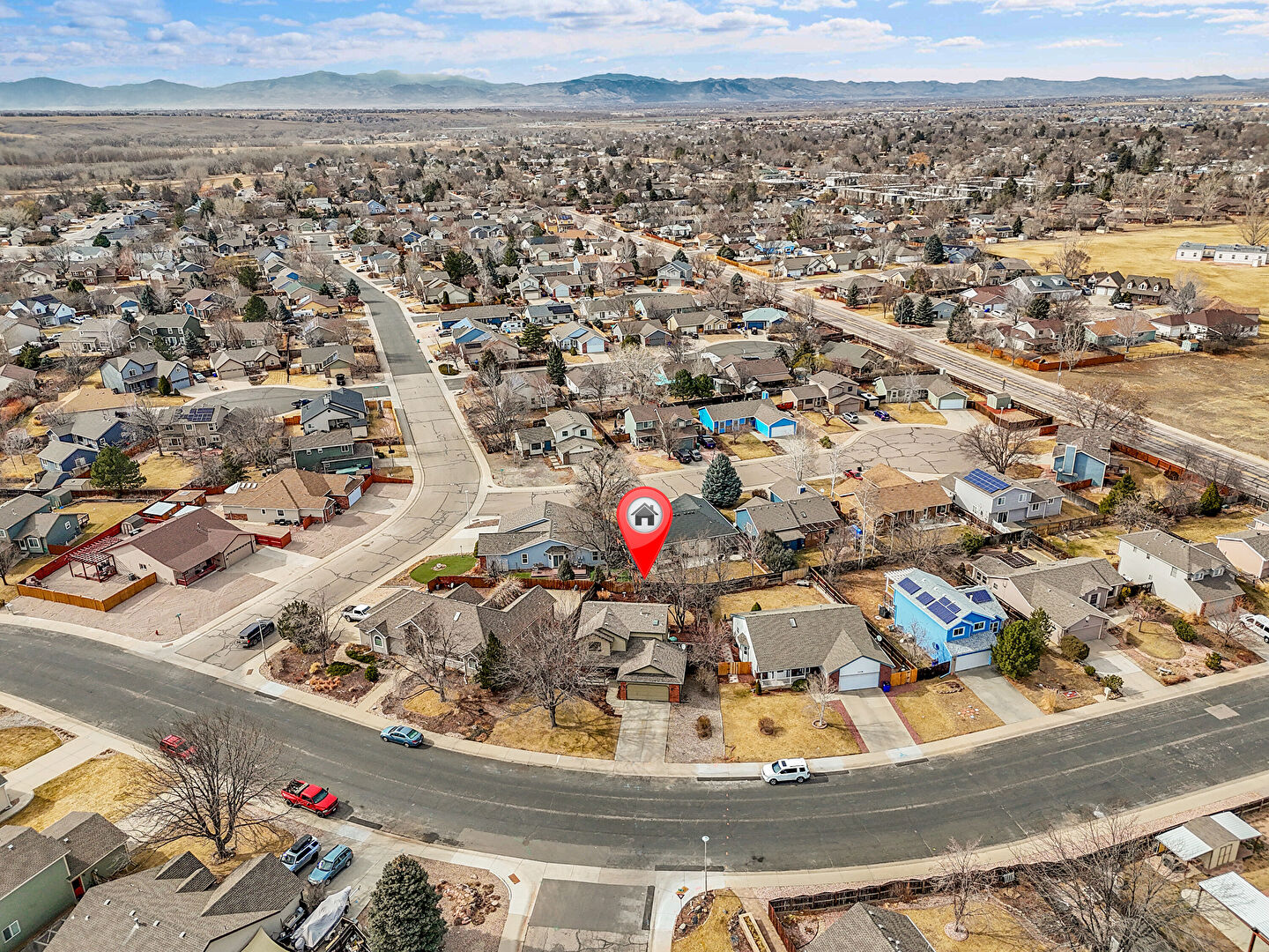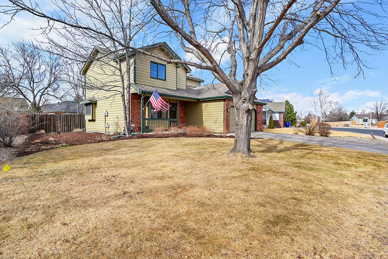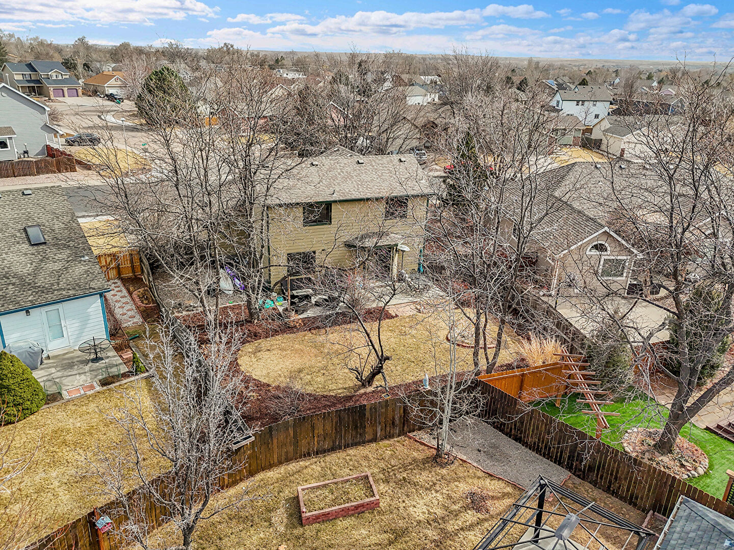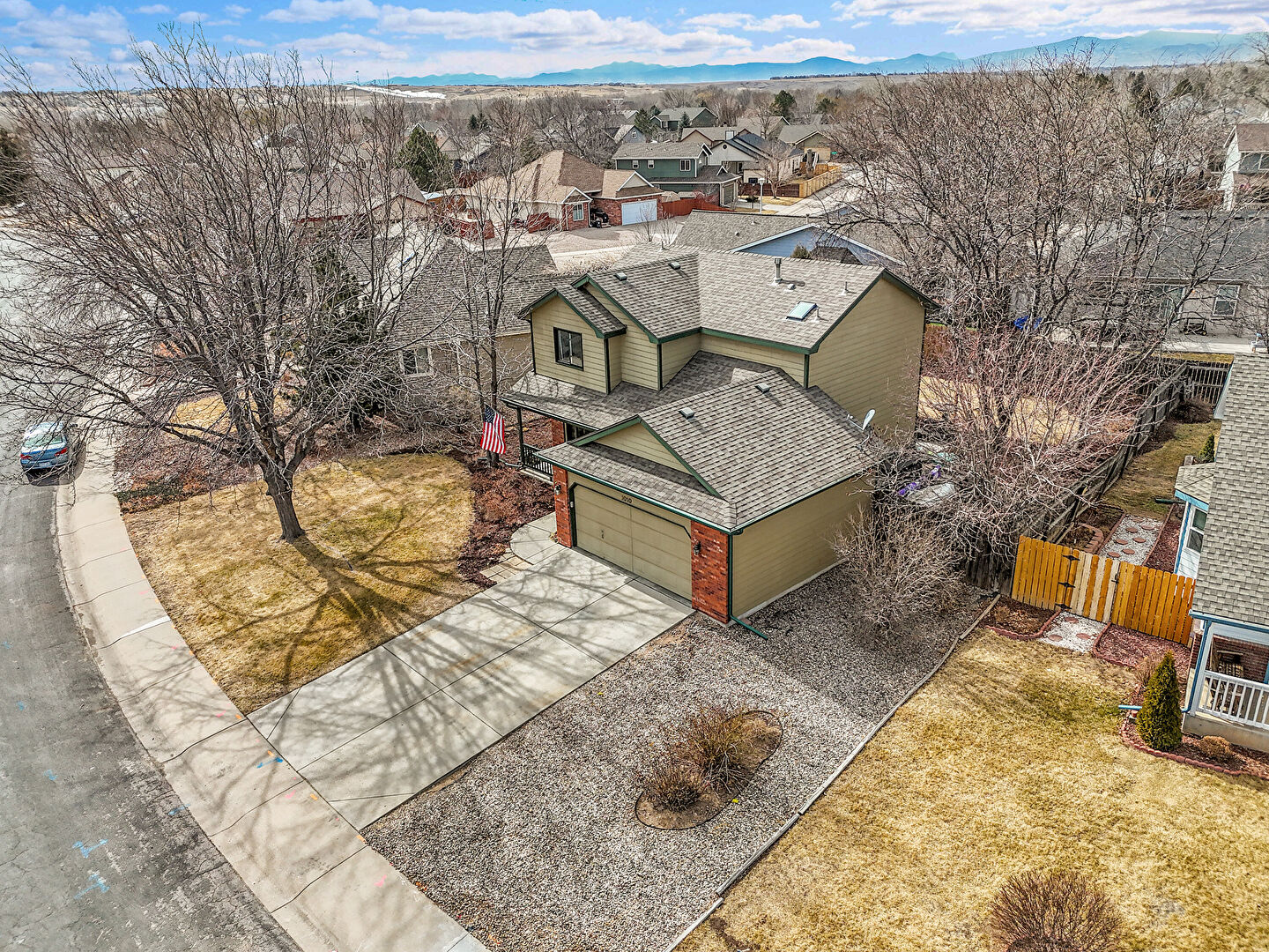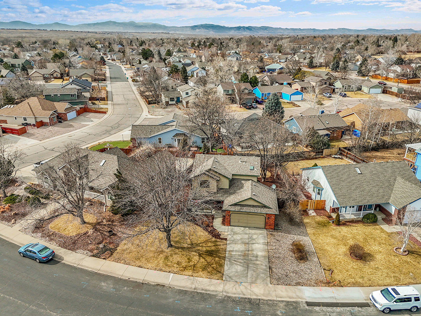 Brick Siding, Downspout, Driveway, Fence, Garden, Gutters, Horizontal Siding, Lawn, Mountain View, Porch, Residential View, Satellite Dish, Shingle Roof, Fence, Horizontal Siding, Lawn, Mountain View, Patio, Residential View