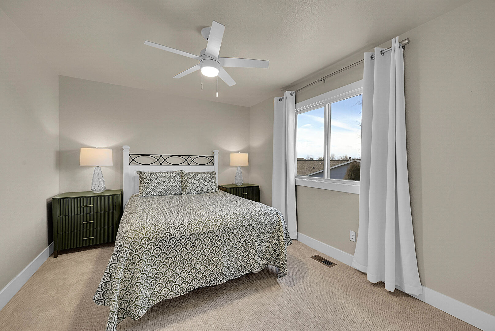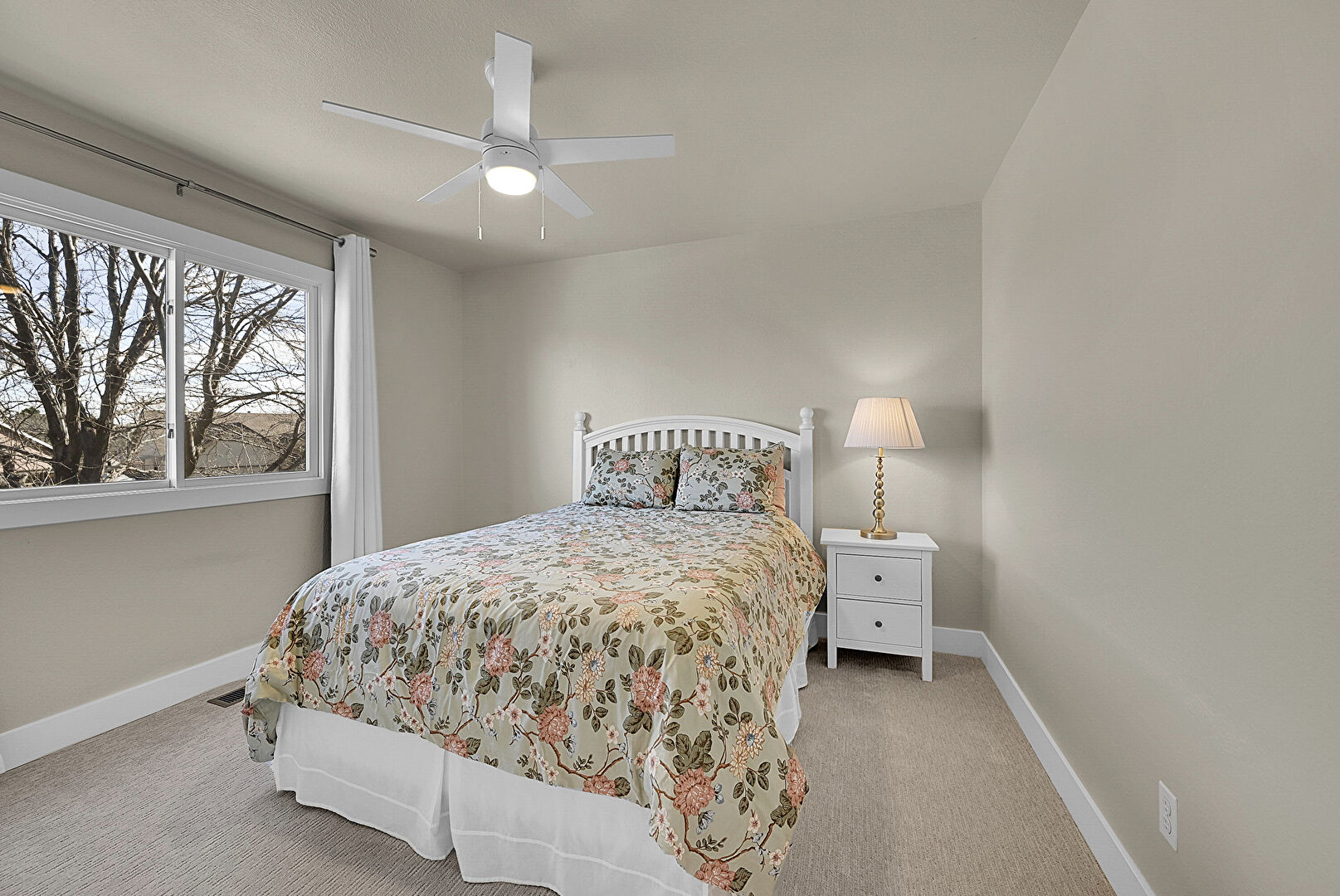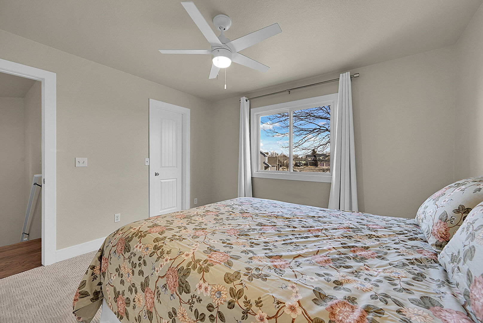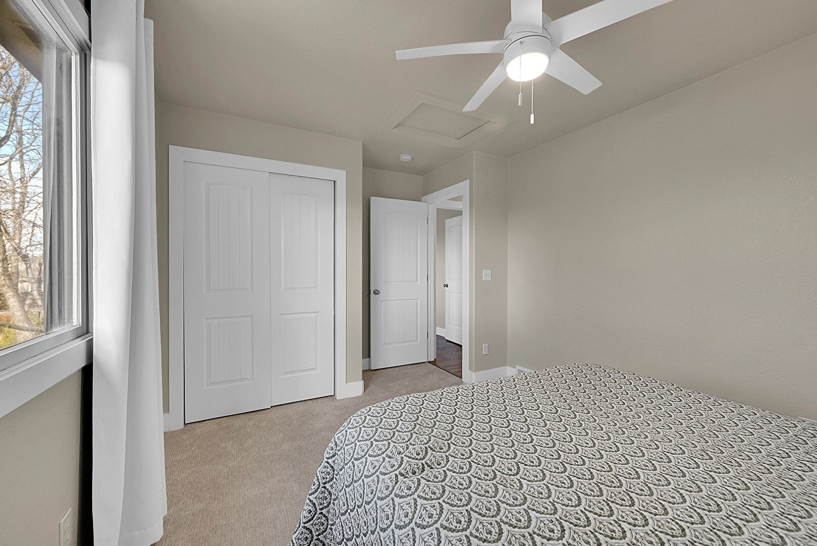 Carpet, Ceiling Fan, Closet, Drywall, Natural Light, Scuttle, Vent, Baseboards Wall