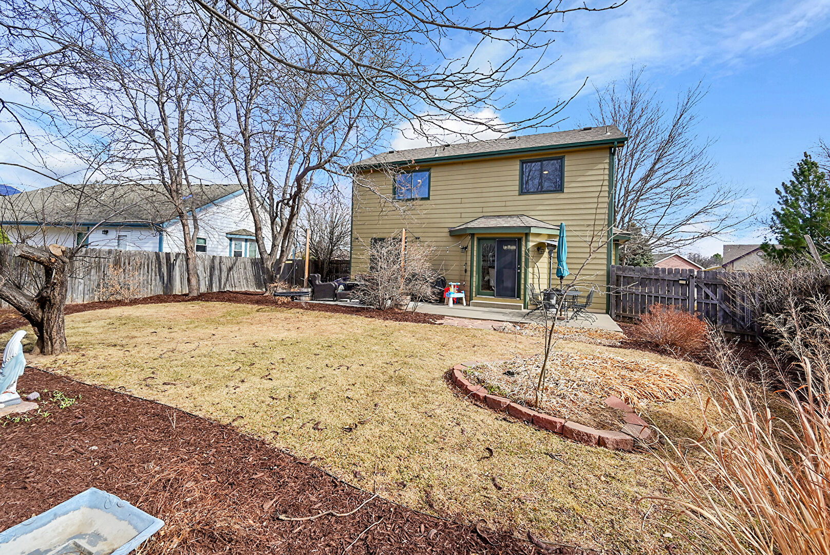Downspout, Entry Steps, Fence, Grill, Horizontal Siding, Lawn, Patio, Satellite Dish, Fence, Horizontal Siding, Lawn