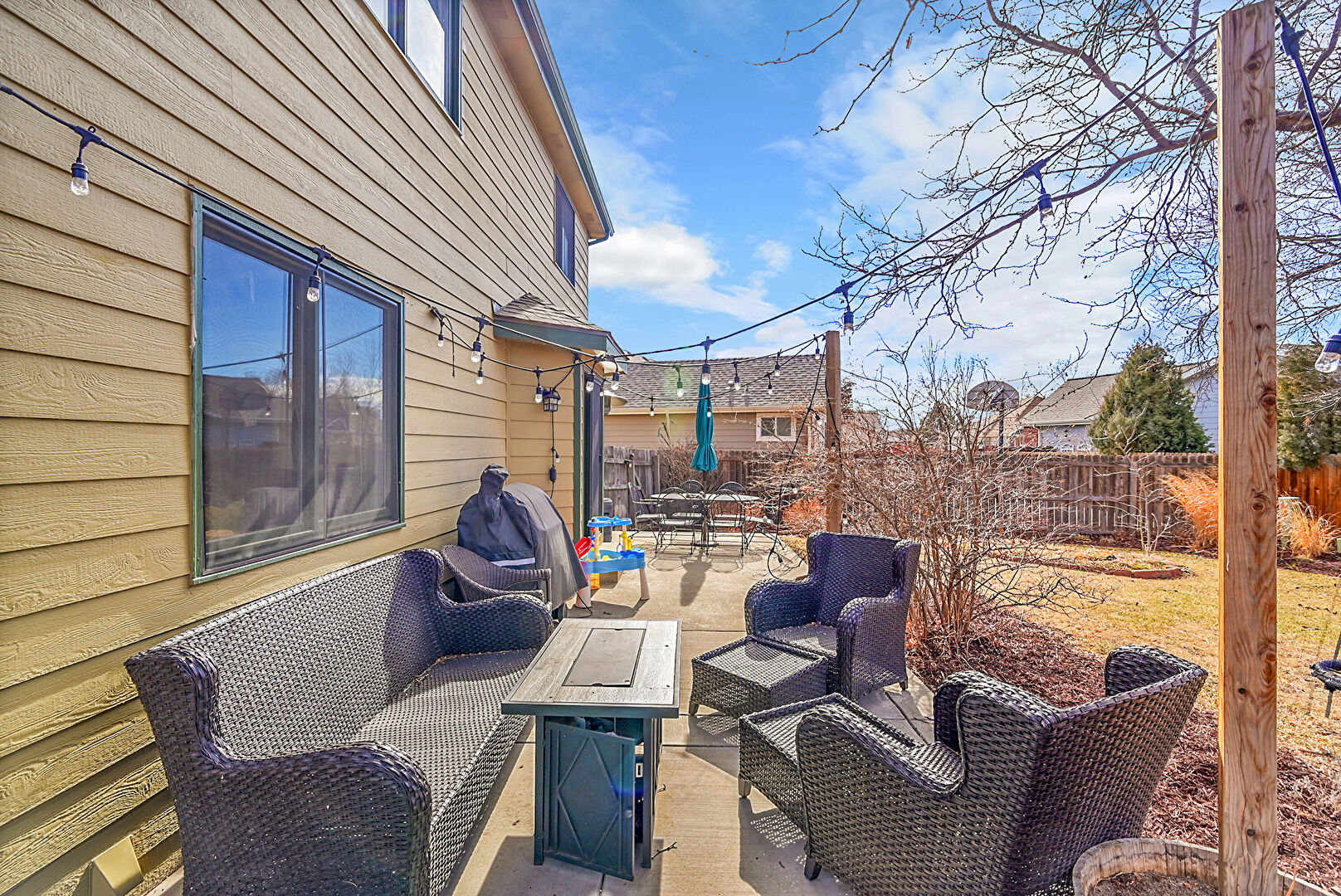 Downspout, Fence, Fire Pit, Grill, Gutters, Horizontal Siding, Outdoor Dining Area, Patio, Fence, Outdoor Living Space