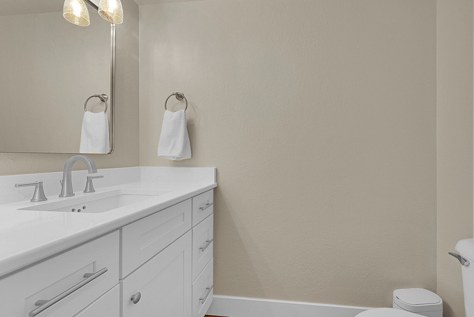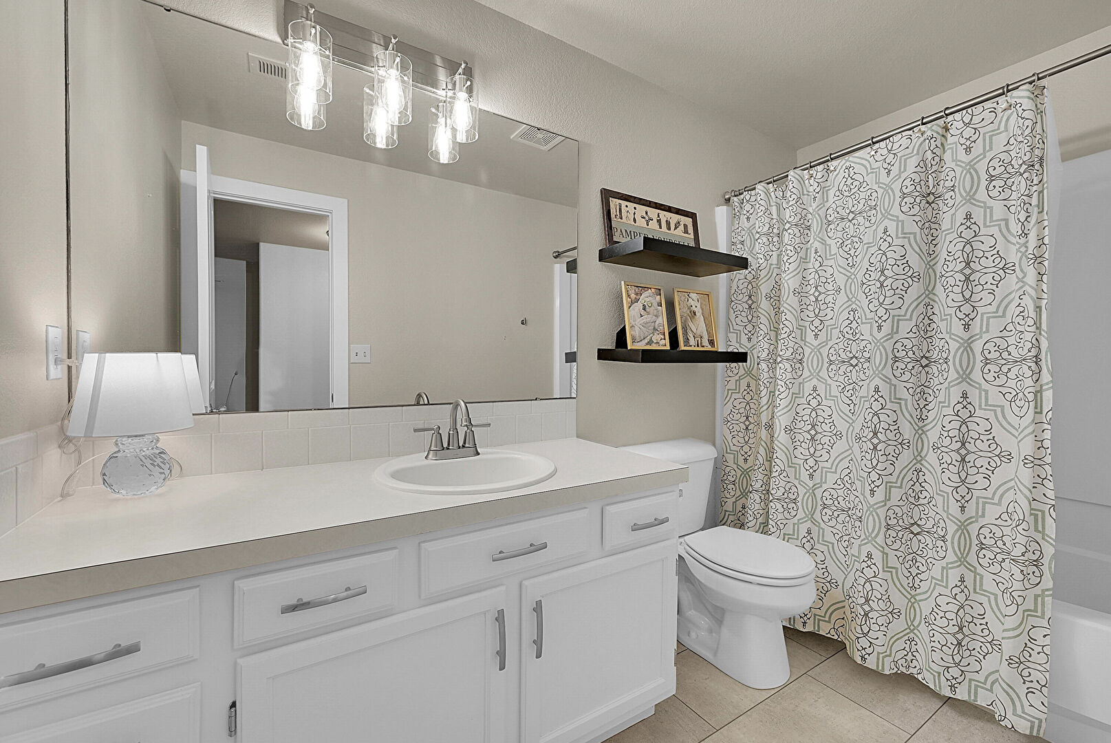 Baseboards Wall, Combined Bath Shower, Drywall, Full Bathroom, Half Bathroom, Textured Wall, Tile Floor, Vanity, Vent, Wood Finish Floor, Baseboards Wall, Drywall, Vanity