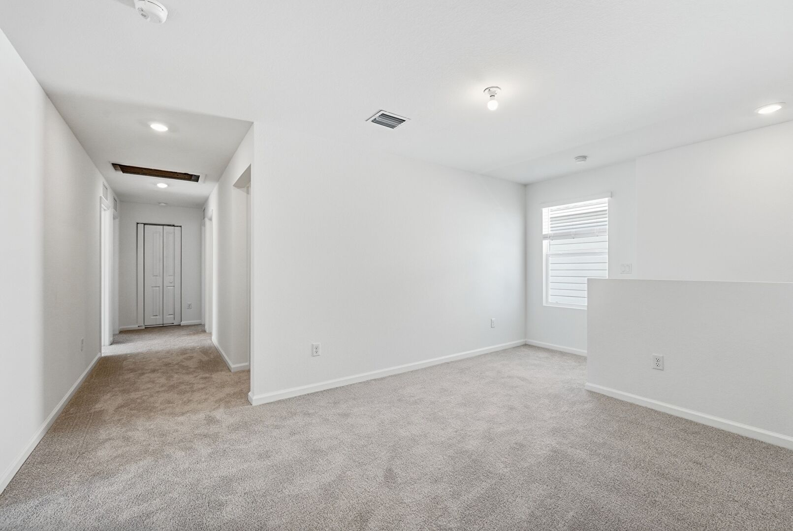 Baseboards Wall, Carpet, Natural Light, Recessed Lighting, Smoke Carbon Monoxide Detector, Vent, Drywall