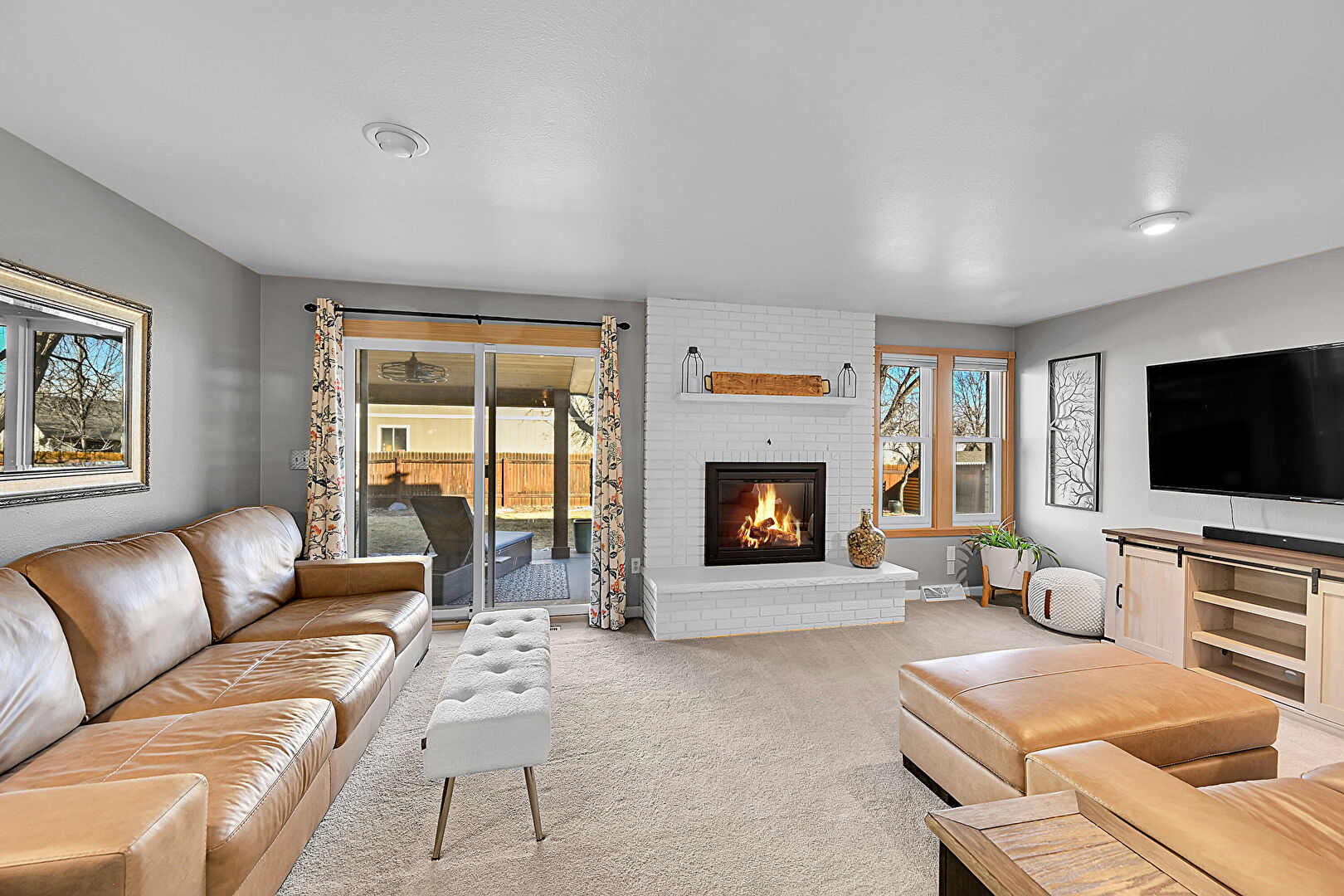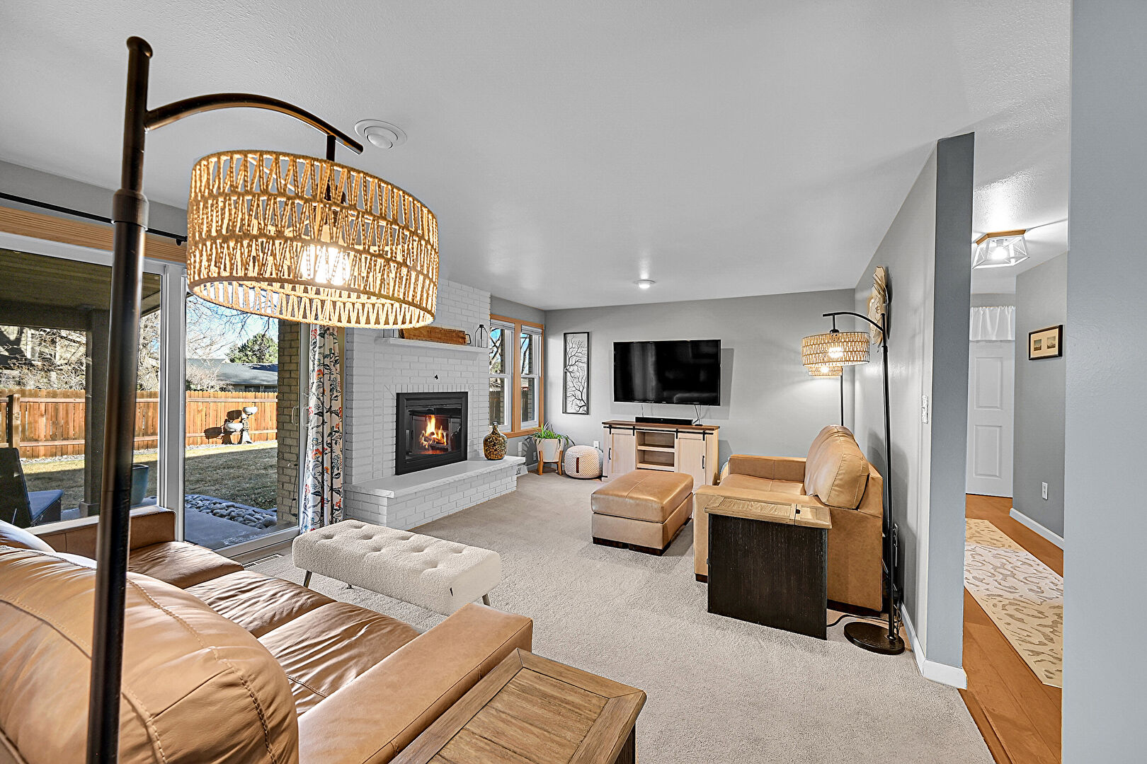 Baseboards Wall, Carpet, Drywall, Fireplace, Natural Light, Vent, Carpet, Fireplace, Natural Light