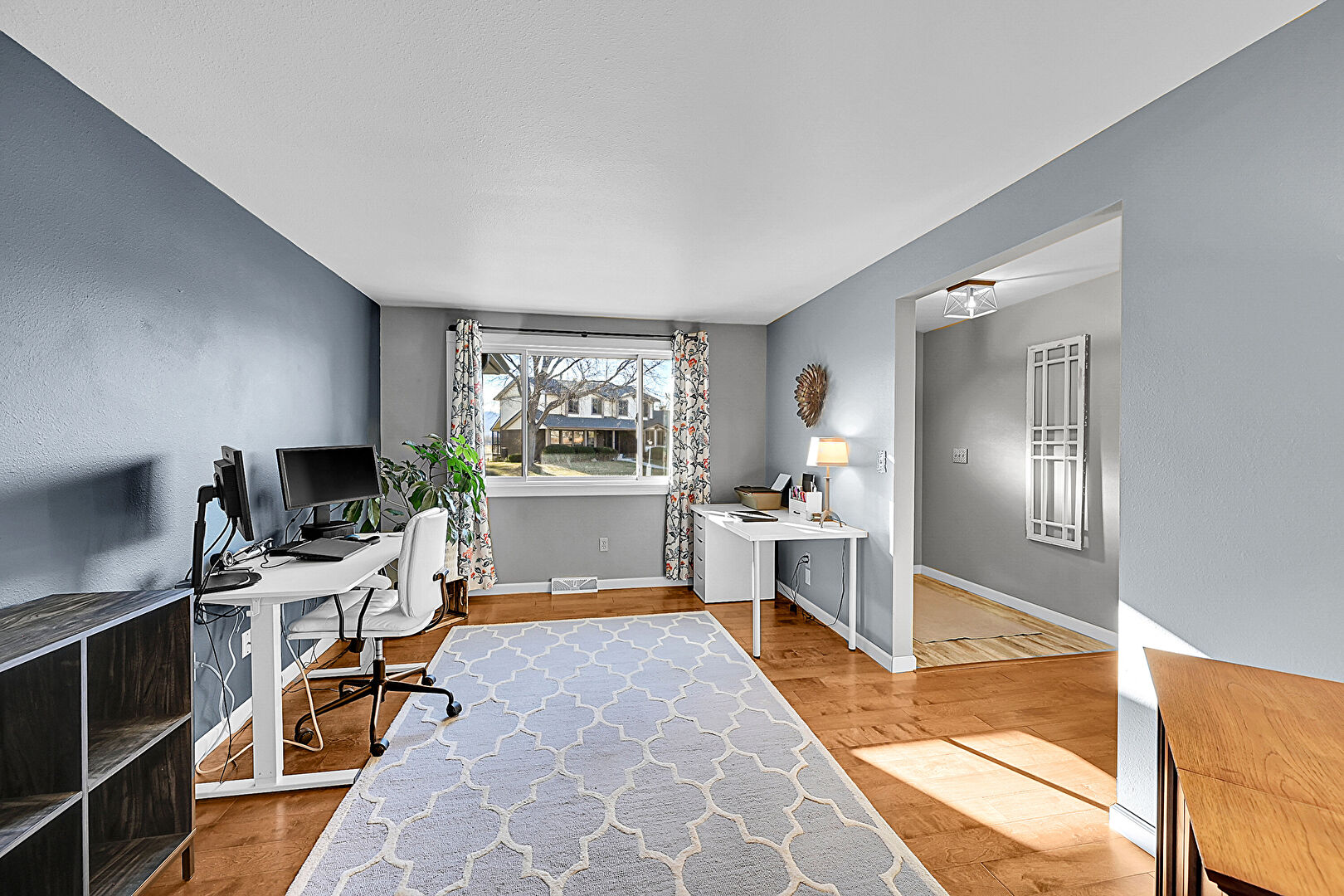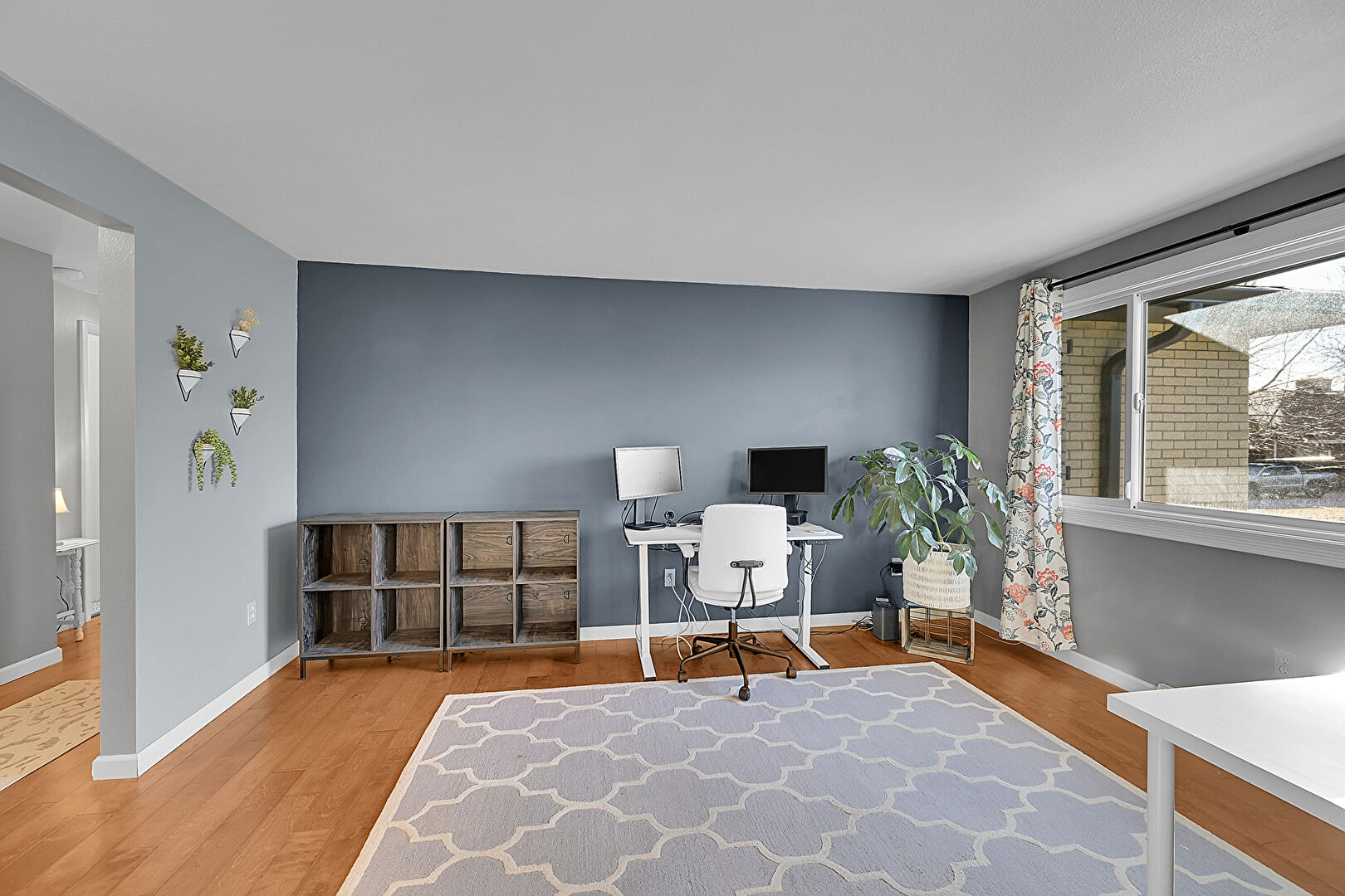 Accent Wall, Baseboards Wall, Drywall, Natural Light, Office Area, Vent, Wood Finish Floor, Baseboards Wall, Natural Light, Wood Finish Floor