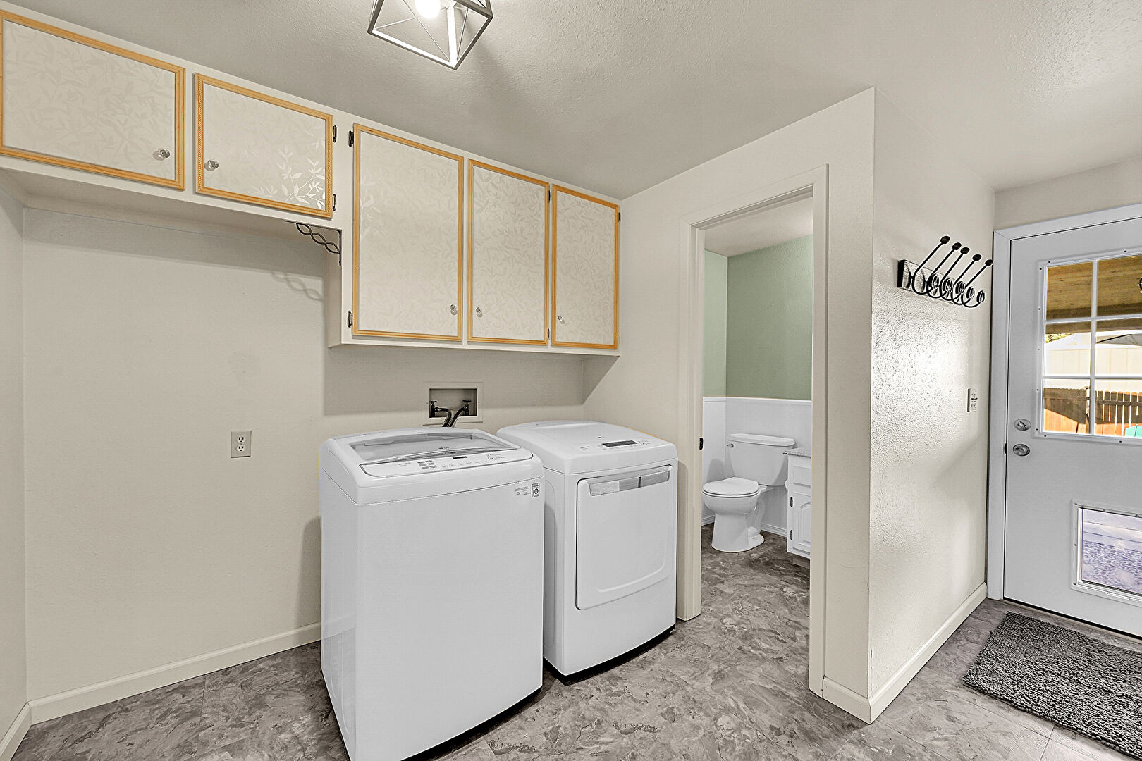 Baseboards Wall, Drywall, Laundry, Textured Ceiling, Vinyl Floor, Washer Hookup, Laundry, Natural Light